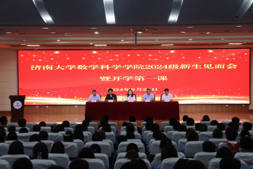 9月20日下午,数学科学学学院2024级新生见面会暨开学第一课在第二学术报告厅举行。学院党委书记崔英静、院长孙元功、副院长王洪凯、副院长靳绍礼出席会议,各年级辅导员、新生班主任、学院教师代表、老生代表以及全体2024级新生参加会议,会议由学院党委副书记、副院长张沂红主持。