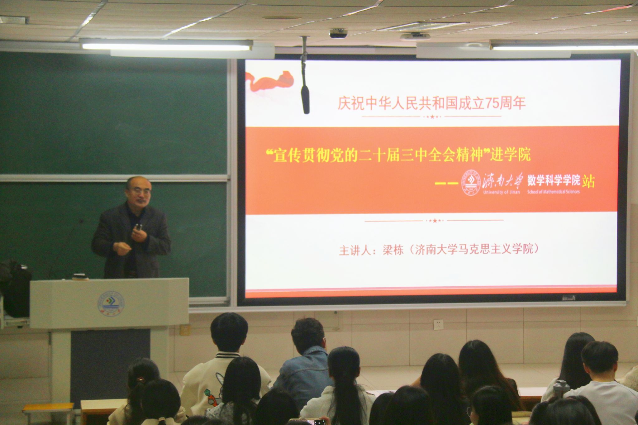 梁栋以《宣传贯彻党的二十届三中全会精神进学院》为主题,以中西比较的视角,围绕“迷思产生、历史演进以及对迷思打破和超越”三个方面,结合大量生动的事例,对中国式现代化内涵进行系统宣讲和深入解读。