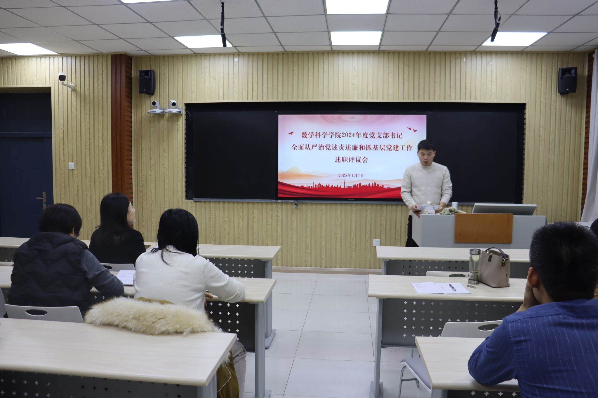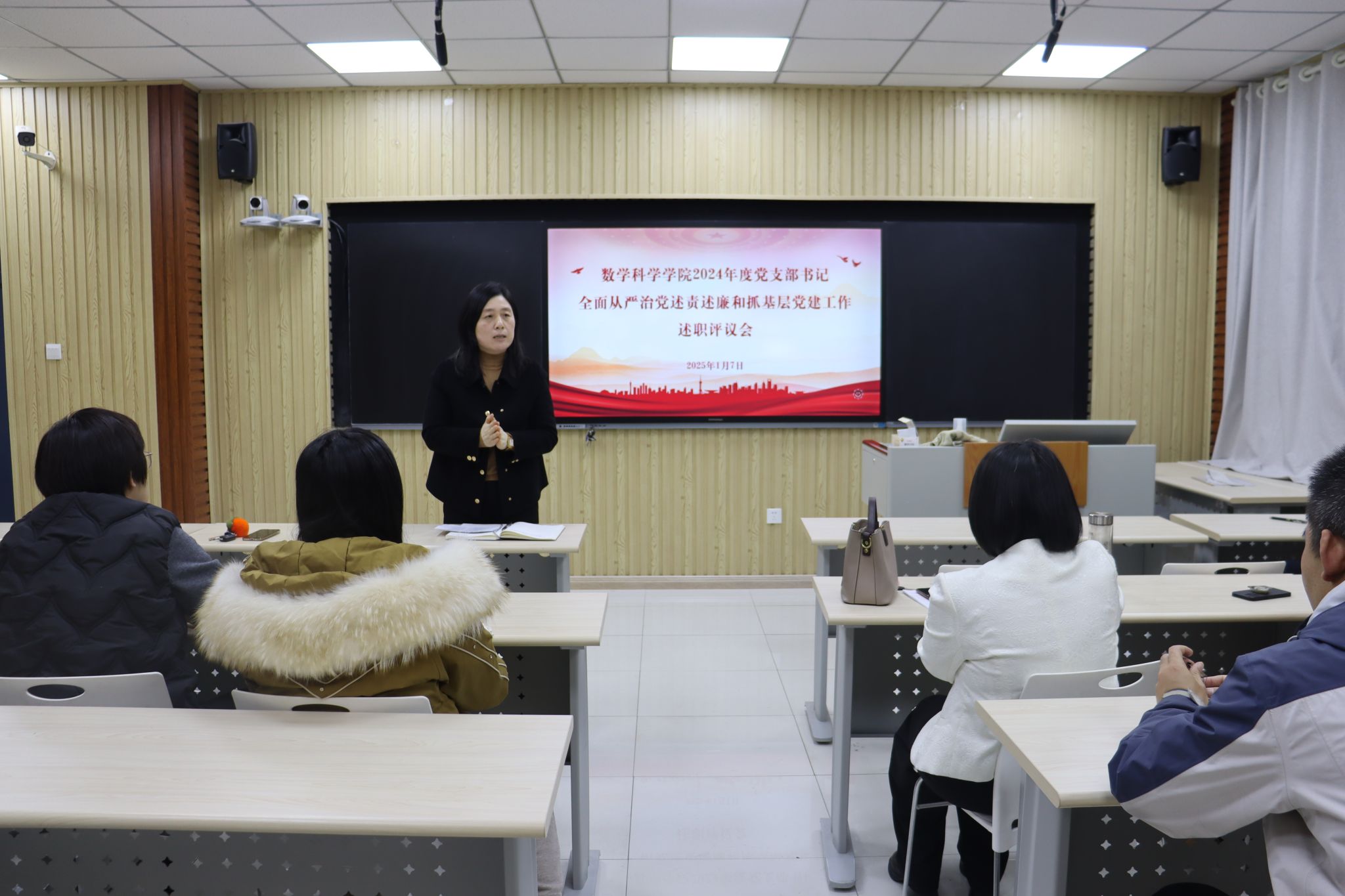 崔英静强调,一是认真查摆反思,制定整改措施。要把工作着力点和落脚点放在抓整改落实上,各支部书记要主动对照述职评议考核的内容和要求,真正把原因剖析透,将整改措施列入2025年支部党建工作计划;二是夯实党建基础,增强党支部凝聚力。创新党支部活动形式和载体,结合数学学科专业特色,打造具有吸引力和实效性的党建活动品牌,充分发挥党支部的战斗堡垒作用和党员的先锋模范作用;三是围绕中心工作,促进党建业务融合发展。坚持党建工作与学院中心工作深度融合,引导党员教师立足岗位,将党建工作贯穿于学科建设、人才培养、社会服务等业务工作全过程,以党建引领业务发展,以业务成果检验党建成效,实现党建工作与学院事业发展相互促进、共同提升。
