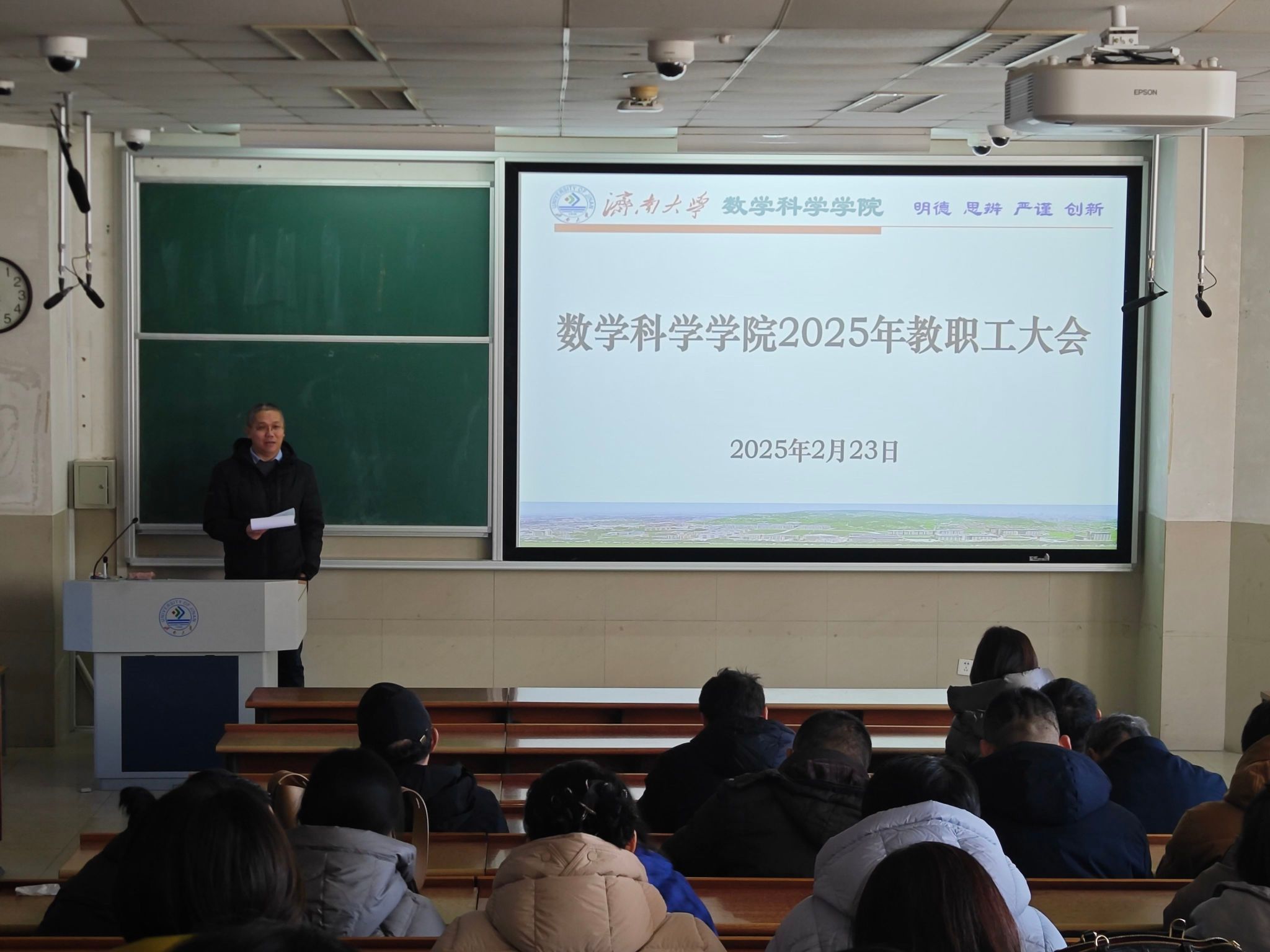 班子成员出席,学院全体教职工参加。