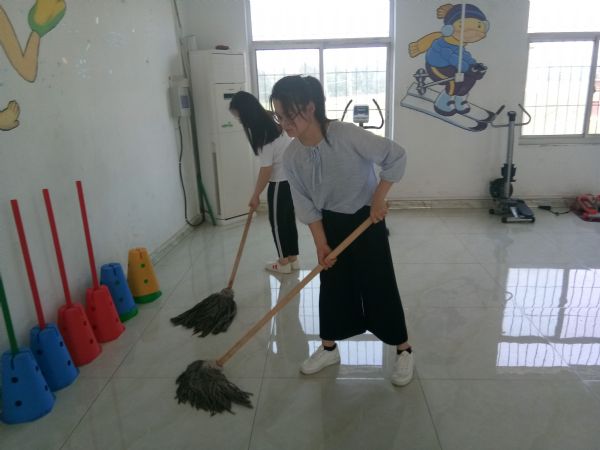 志愿者们没有被炎炎热日困住脚步,在下午一点及时集合,乘车前往康复中心。看门的老大爷看见熟悉的志愿者们,对他们的到来表示欣喜与欢迎。康复中心的老师们也亲切的告诉志愿者们今天所要打扫的区域。随后,志愿者们有的拿着拖把,有的拿着扫把,有的拿着抹布,认真细致地清理各个角落。很快,汗水湿透了志愿者们的衣背,但他们并不喊累,依然乐在其中。看到康复中心孩子们脸上的天真的微笑,志愿者们表示,天气虽热,但他们的心充盈着甘甜与凉爽。最后,志愿者们在康复中心拍照留念,此次康复中心志愿活动也宣告结束。