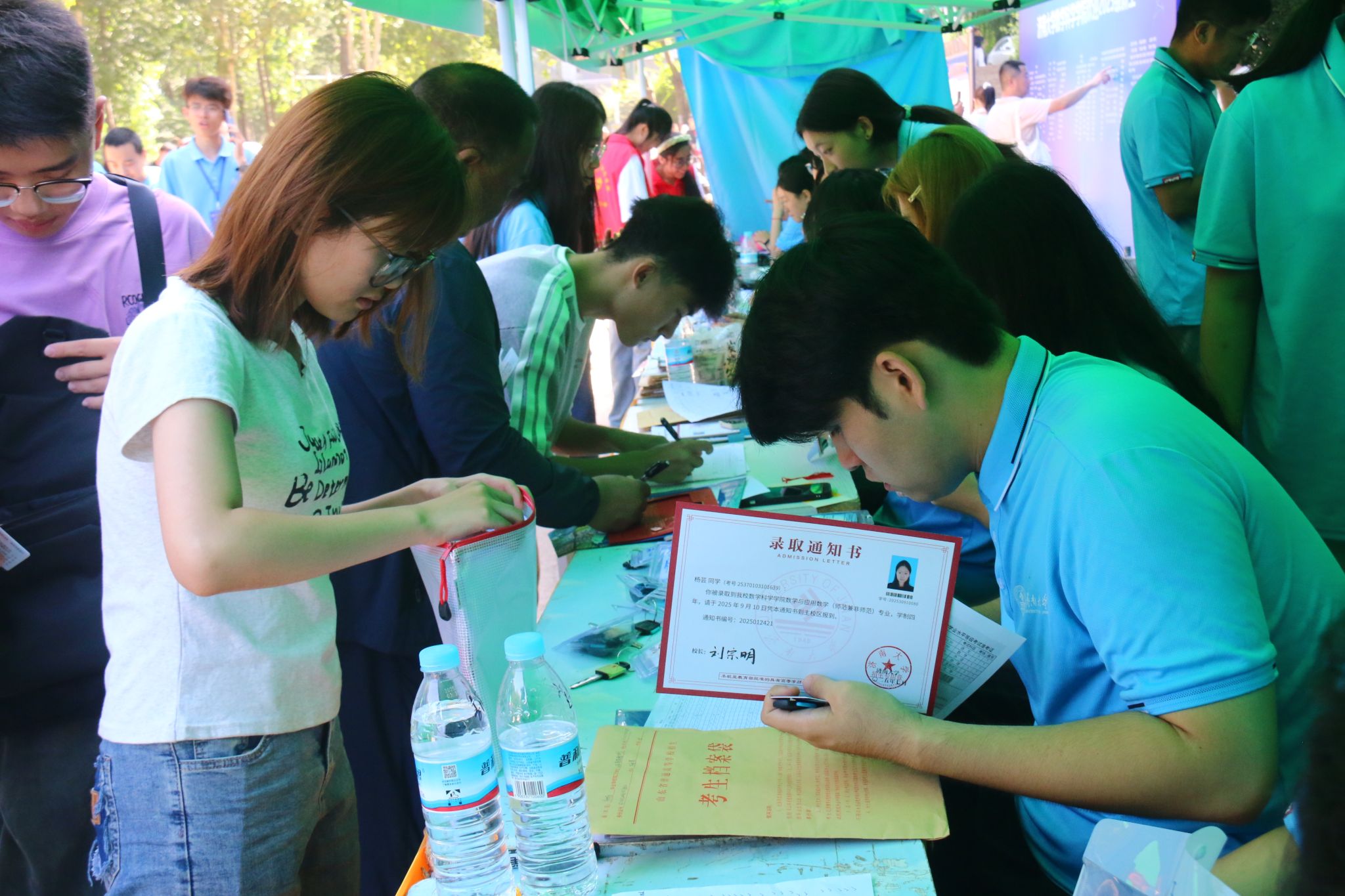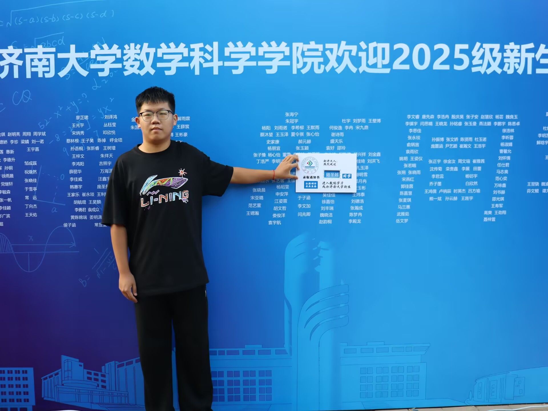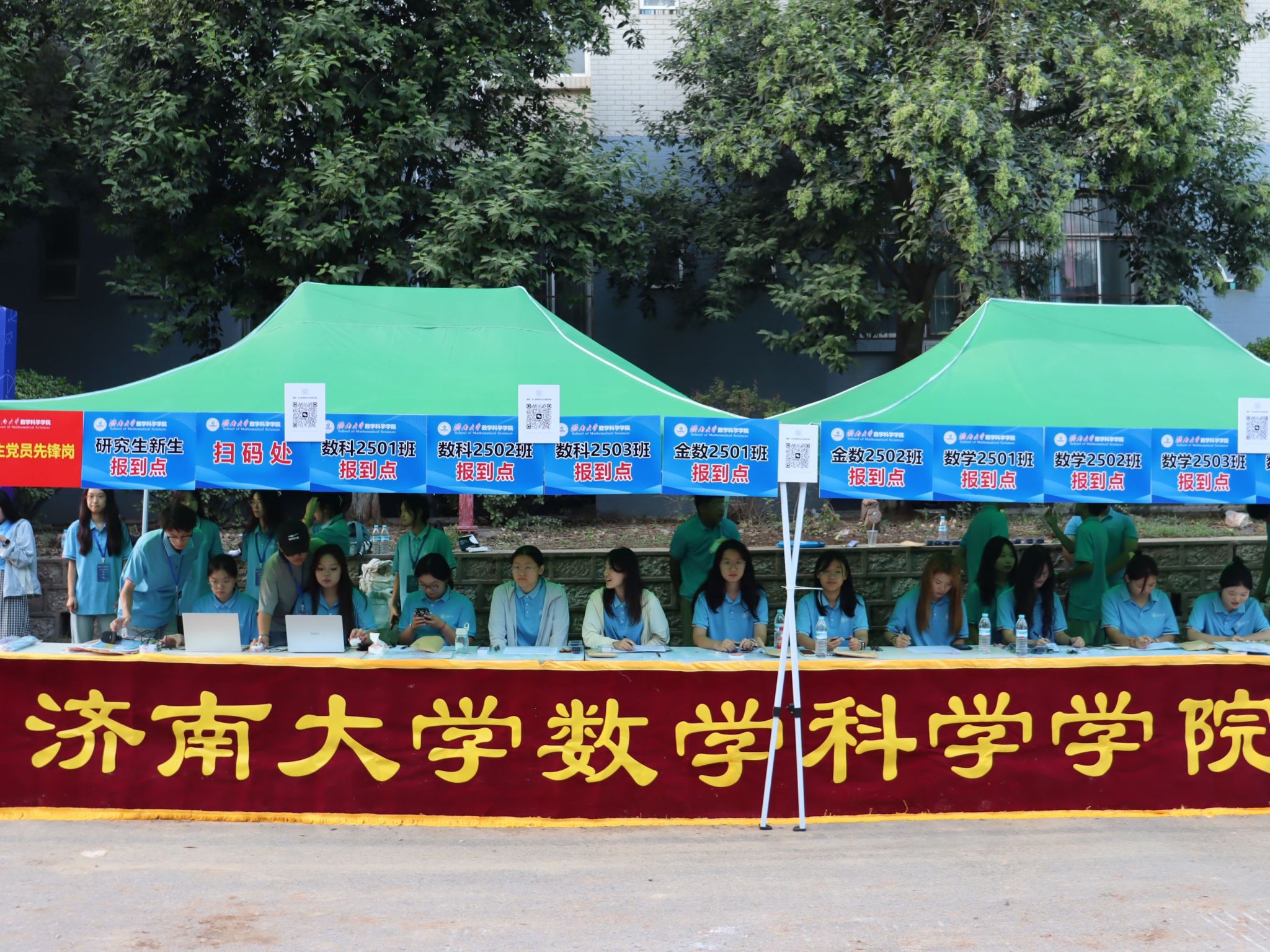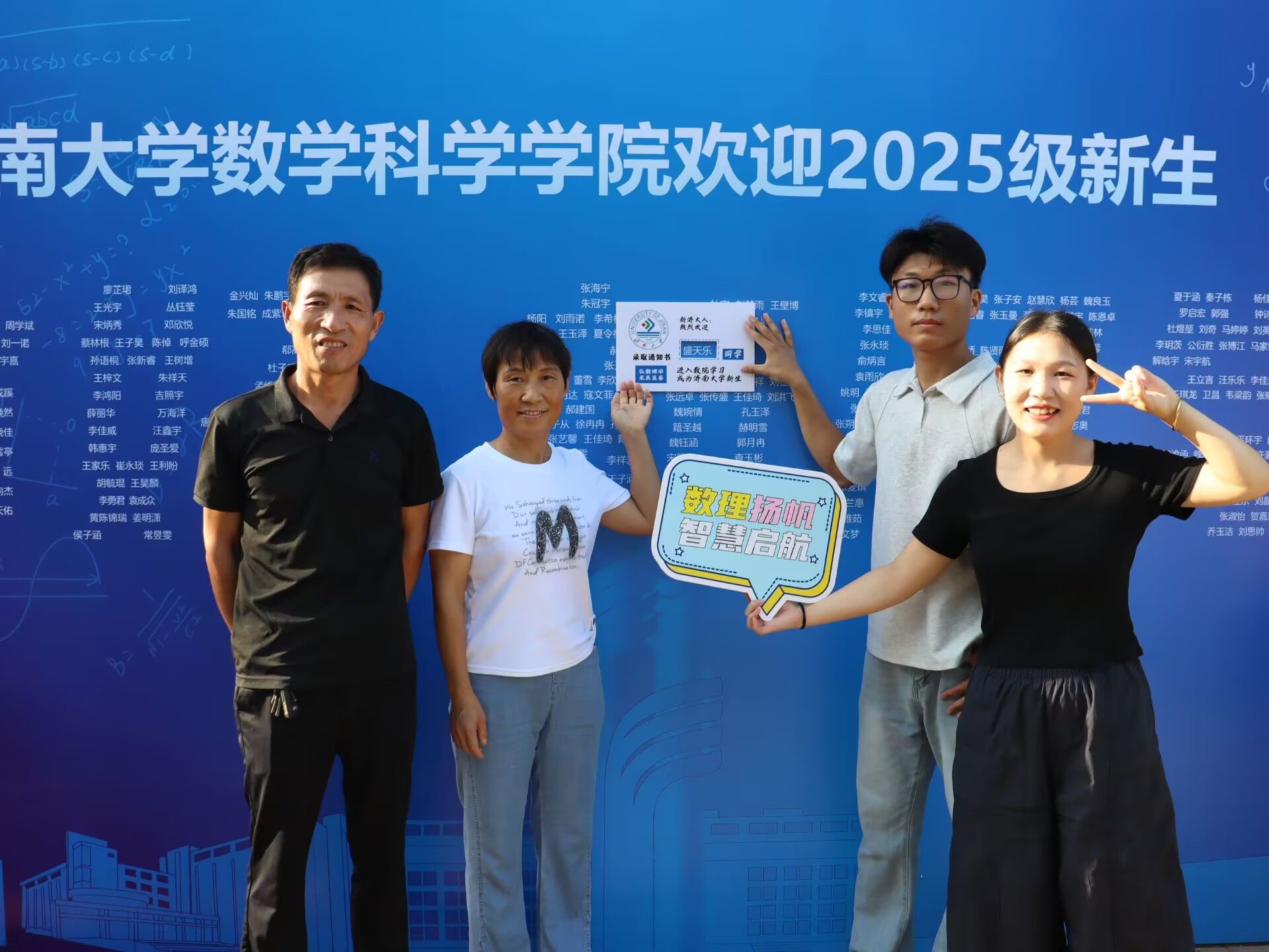 此次迎新活动,学院特别融入数学文化特色元素。在报到入口处,以数学公式、数学家名言设计的文化展板吸引众多新生驻足,在了解数学历史、感悟数学魅力的同时,激发新生对专业学习的热情。在互动区,专属姓名墙与创意标签别出心裁,留下初入校园的专属印记,并与姓名墙合影,定格与自慰高潮