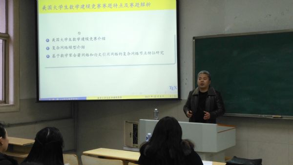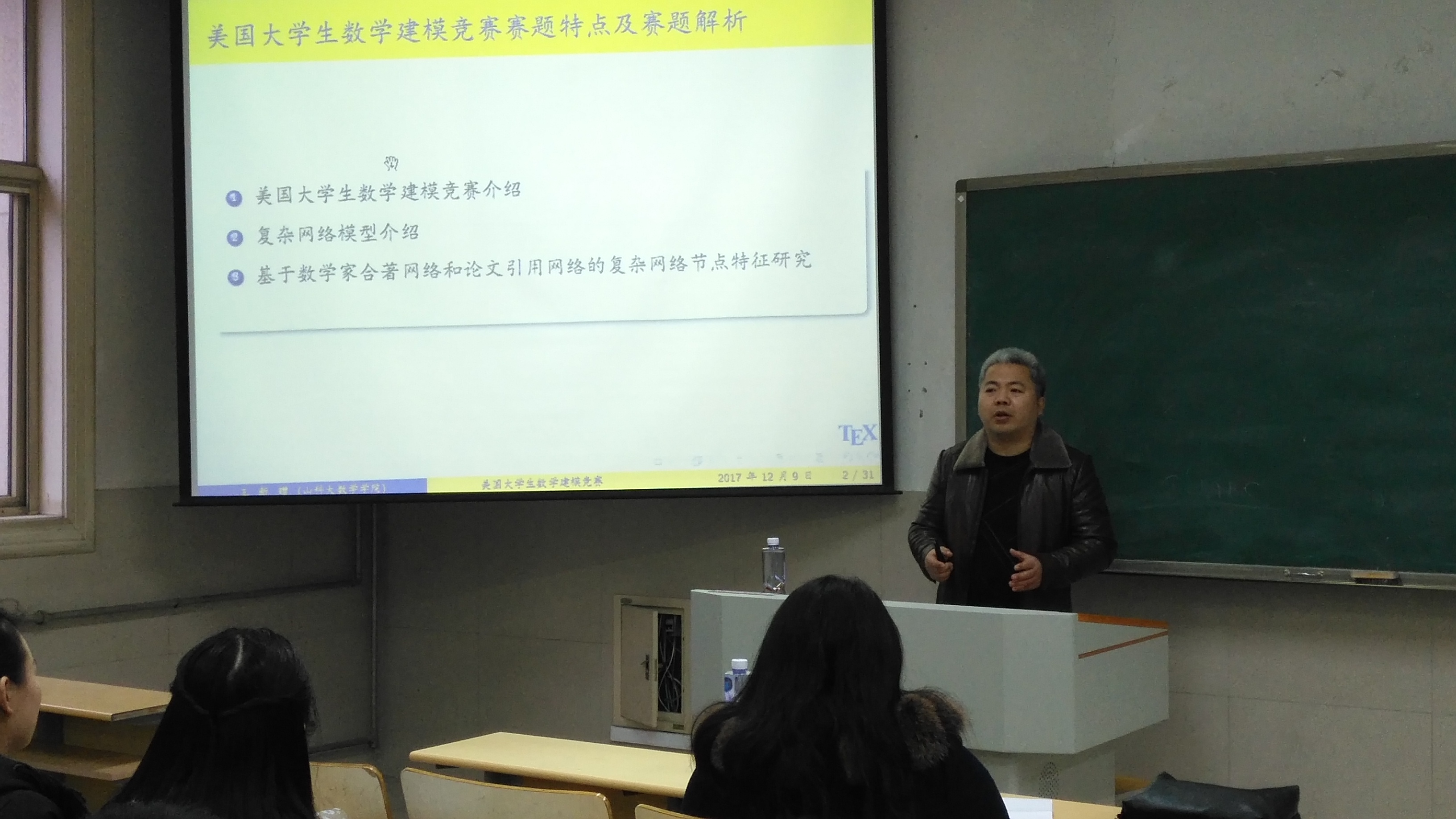 的邀请,山东科技大学王新赠副教授在10教101为我校师生作了“美国大学生数学建模竞赛(以下简称美赛)赛题特点及赛题解析”的报告。来自我校各学院准备参加2018年美赛的五十多位学生和部分数学建模指导教师参加了报告会。会议由数学院建模中心主任许振宇主持。