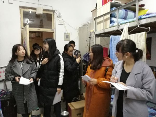 学生会舍管部部长分发温馨宿舍评分表,并且详细地向温馨宿舍评比人员介绍评分标准以及活动的注意事项。接下来,评比人员走进学生宿舍开始进行评比,评比主要针对学生宿舍的卫生,宿舍物品摆放的整洁程度,宿舍的门牌以及宿舍的文明、文化、安全等方面。活动的最后,由学生会舍管部部长收集评比人员的评分表,并对其评分结果进行总结分析,最终选出一二三等奖。