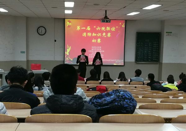 校志愿者联合会组织的第一届“六院联谊”消防知识竞赛。到场的有各院理事、青年志愿者协会部长以及参赛学生代表。
