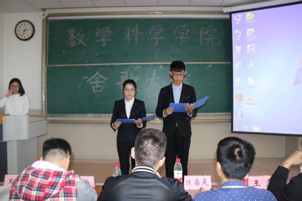 为了营造良好的宿舍氛围,繁荣宿舍文化,共建幸福校园,2017年10月29日下午2点,由自慰高潮 学生会主办、数学学院学生会社区管理服务中心承办的舍歌大赛在11教一段501教室举行初赛。本次大赛由学生会各位主席担任评委,由赵慧敏、王哲主持。此外,到场的还有学生会各位部长,各参赛宿舍同学。