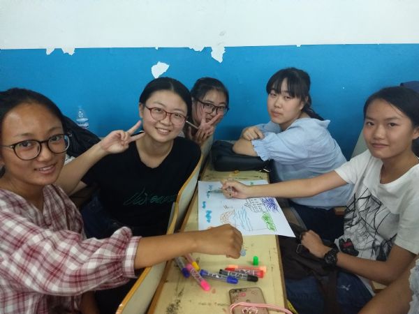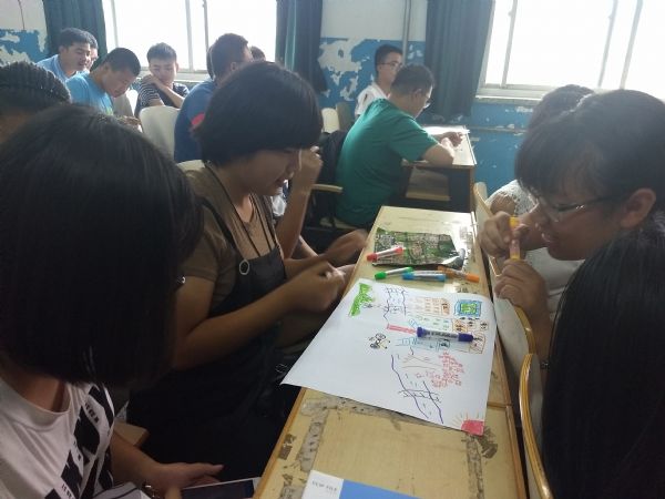活动共分为三个阶段:“画出你心目中的济大”、“蒙眼作画”、“你划我猜”。主持人致开场词后,活动正式开始。首先进行的是“画出你心目中的济大”,同学们积极投入、用心绘画,画完之后同学们也积极走上讲台与同学分享自己的感受。接下来是“蒙眼作画”,同学们蒙上眼睛凭着自己的感觉画出主持人让画的东西并交给主持人,再到主持人手里认出自己画作,整个过程每一个人都在积极参与,气氛融洽。最后进行的是“你划我猜”,同学们分好小组,每个小组依次到讲台进行游戏,游戏过程中同学们配合默契,体会到了团队合作的乐趣。