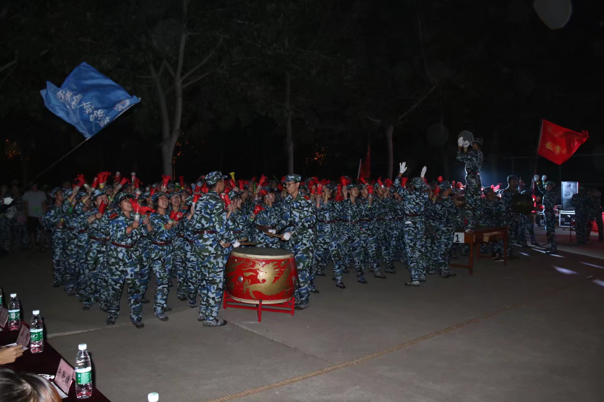 在近一周的训练当中,尽管同学们白天的军事训练十分疲惫,但是他们还是拿出了饱满的热情用心学习校歌,认证对待每一次彩排,一遍又一遍的重复着口号,精神饱满,士气高昂。负责敲鼓和举旗的同学也都用尽浑身解数,力争展现出更好的精神风貌。在21日晚的初赛当中,自慰高潮