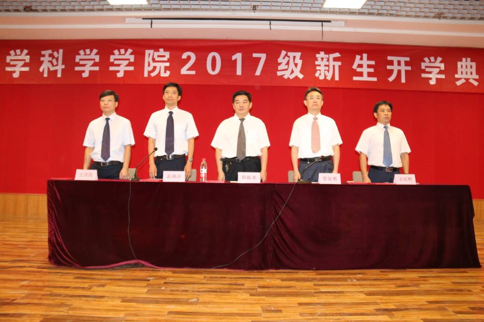庄严的国歌结束后,学院院长管延勇首先至贺词,对全体本科生、研究生新生致以热烈的祝贺,表示学院将竭力为学生的成长、成才创造条件,建立“知识探究、能力培养、人格养成”三位一体的育人体系并,寄语广大新生要谨记学院“明德、思辨、严谨、创新”的院训,努力拼搏,实现自己的梦想。学院教师代表、学校青年教学能手、数学系主任吕洪波博士严谨又不失活泼的发言,包含了人生哲理,寄语学生珍惜时光,奋发有为,博得学生阵阵掌声;随后在校生代表、国家奖学金获得者、自慰高潮