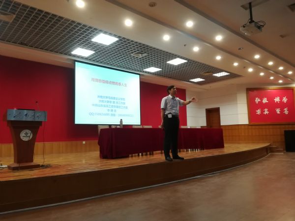李朋忠教授首先从“大学是什么”“大学应该收获什么”向大家讲述大学是人生的新平台,在大学生活中我们应该通过文化传承、知识创新来提高我们的素质,他希望同学们能坚定理想信念,实现人生价值。之后,李教授还对新生提出了殷切的希望,希望新生能够成为有文化、懂专业、守纪律、知担当的青年,通过坚定理想信念达到理想境界。最后,李教授告诉当代大学生要认识到中华文化的博大精深,要有文化自信,要时刻准备,为实现中华民族伟大复兴的中国梦而努力奋斗,做一个有信念、有梦想、有奋斗、有奉献的大学生。