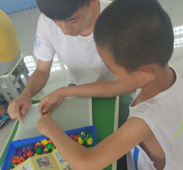 的志愿者们对孩子们倾注了更多的关心与爱。在课堂上,自闭症儿童集中注意力并不容易,需要志愿者们时刻绷紧神经,积极配合老师,为的就是让更多孩子集中注意力,学习更多生活技能;在课下,他们蹲下身,与孩子们亲切对话,带他们玩游戏,帮助他们锻炼身体。孩子们在志愿者的积极开导下也露出了一张张欢乐的笑脸,发出阵阵笑声。志愿者同学们也在照顾孩子的同时看到他们的阳光和勇敢,感受到他们的纯真和美好。相信有了志愿者的帮助,孩子们能够走出自我封闭的世界,搭建一座“星星”与“地球”的桥梁。