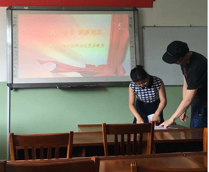 郭老师以“两学一做,筑梦远航”为主题,对2017届毕业生党员做离校前的党性教育,她要求毕业生党员在离校前进一步强化党员意识,增强组织纪律观念,做到四个“合格”,在文明离校过程中发挥党员榜样示范作用,主动承担起党员的责任和义务,主动为老师承担工作,主动做好个别学生的思想工作;在走向社会后,继续秉承“弘毅博学求真至善”的校训,积极进取,努力创造优秀业绩,为党旗添彩,为母校增光。