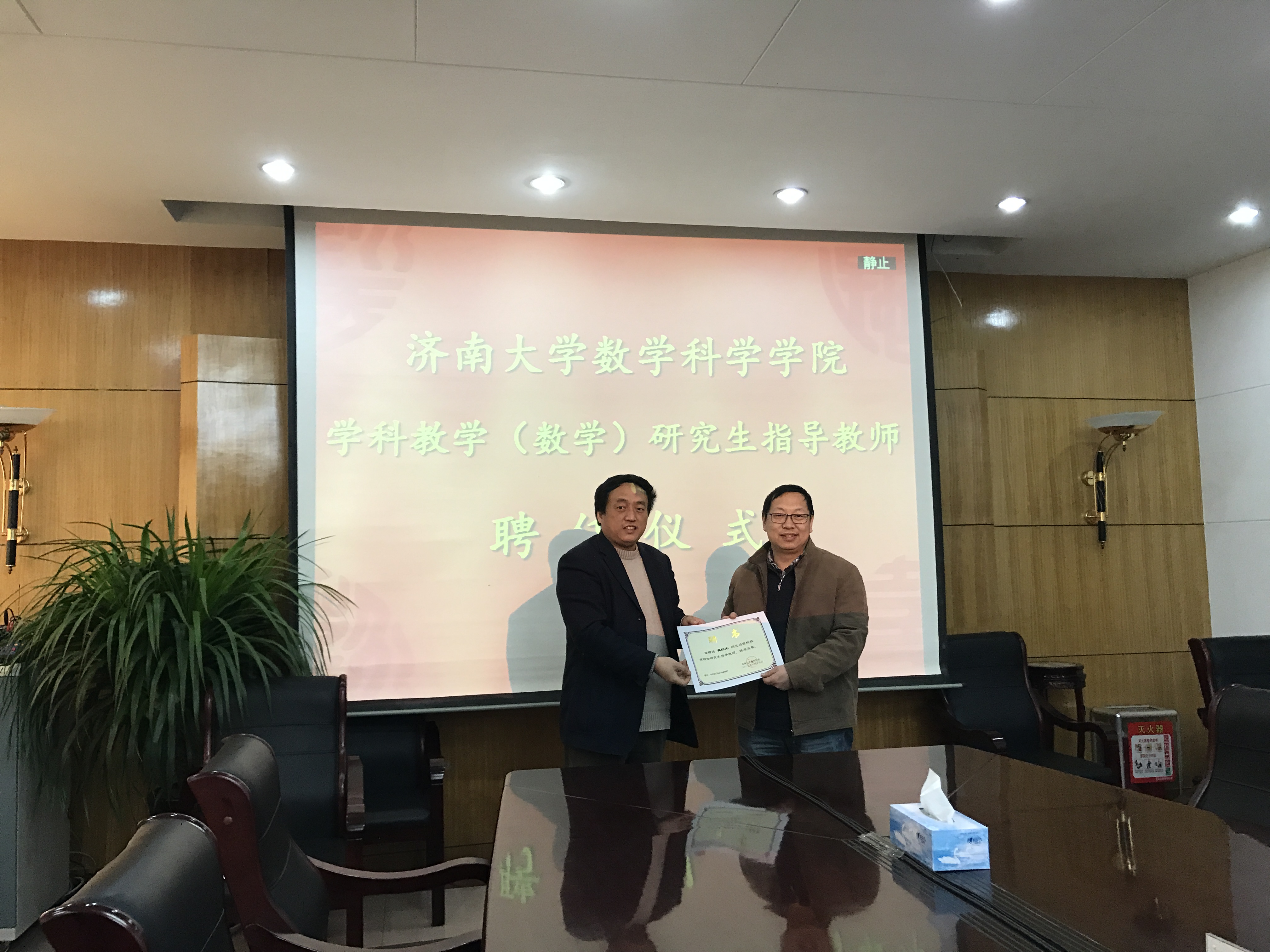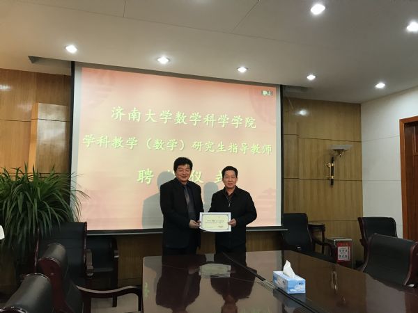 韩振来书记首先介绍了学院学科教学(数学)研究生的招生及培养情况,指出学校非常重视教育硕士专业学位研究生的培养工作,在培养方式上十分重视理论与实践相结合,实行双导师制,重视校外导师在教育硕士培养过程中的重要指导作用,校内外导师共同指导学生的学习和研究工作。对实践教学的实施,韩书记明确了目标和具体内容,根据管理和评价制度,具有完备的实训设施和稳定的校外实践基地,切实保障实践教学活动的有效开展。随后,研究生院副院长张志全为12名校外导师颁发了聘任证书。
