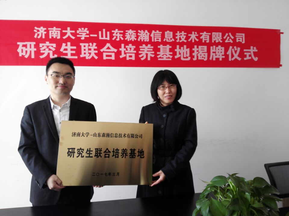 的交流与合作。管延勇院长对公司的支持表示感谢,表示会为公司输送优秀毕业生,为公司做好服务保障。会上,双方就学生实践基地的建设工作进行了充分交流,表示将在学生成长成才的联合培养方面努力合作,为学生积极搭建科创平台,提高学生实践能力,开展科技创新培训等系列合作。仪式上,管延勇院长代表学校与与山东森瀚信息技术有限公司总经理李晓辉签订了研究生联合培养基地和本科生实践教学基地协议,参加人员还一起参观了山东森瀚信息技术有限公司。