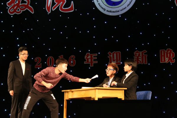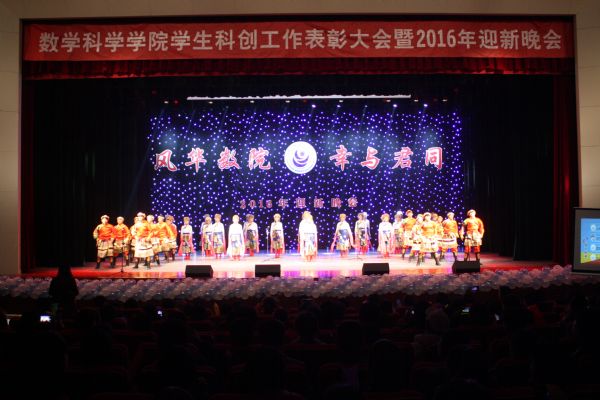 晚会在火热的开场舞中拉开帷幕,全场观众迅速融入晚会热烈的气氛中,与微信墙的实时点播相互促动。歌曲和舞蹈串烧分别唱出梦想、舞动青春。小品《数院甄嬛传》结合学院专业特色,把数学各学科用诙谐的语言在舞台表现出来,以角色大反串的形式上演了一场别开生面的爆笑后宫大戏。哑剧《你有我也有》以夸张的表演和精彩的配合让现场观众笑不拢嘴。创意节目《黑夜精灵》以及《手套荧光舞》,其精美造型,凭借动感的舞蹈节奏在黑暗中展现了一场精彩绝伦的光影景象。一时间晚会现场群情激昂,掌声雷动,气氛一次次达到高潮。同时与西藏中学的小朋友们一起现场表演的《藏汉一家亲》,给观众带来了少数民族舞蹈的美妙体验。晚会上,辅导员赵华磊老师与学生的倾情朗诵,诉说“我”的济大情,打动着每一位济大学子……这些精彩纷呈的节目给观众带来了一场无与伦比的视听盛宴,充分展现了数院学生多才多艺、自信昂扬的精神风貌。