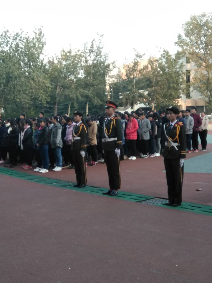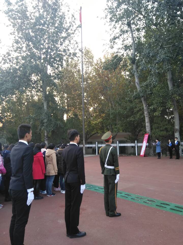 在西校区北苑操场举行升旗仪式。辅导员赵华磊和学院全体新生参加升旗仪式。