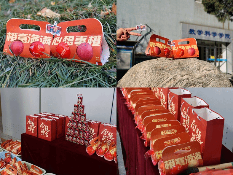 礼包中既有寓意“好运旺旺”的旺仔牛奶,也包含“心想事成”的橙子、“平平安安”的苹果,每一份礼物都承载着学院的深切关怀与全院师生的真挚祝愿,为考研学子注入温暖力量。