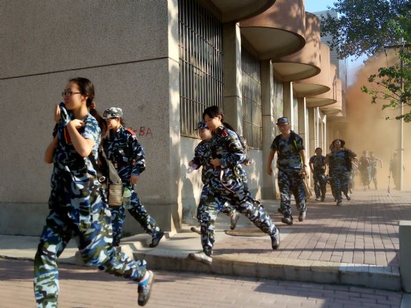 下午四点,在对同学们进行了相关的逃生知识讲解后,各连队负责人在楼道、大门开始组织大家有序撤离,进行疏散逃生、自救演练。演练现场浓烟滚滚,同学们迅速有序地从大礼堂跑出,在短时间内按照之前规定的应急逃生路线迅速疏散到礼堂后的篮球场。演习结束后,消防宣传人员通过分析国内校园典型火灾案例,向师生们详细讲解了火灾的危害、发生火灾后如何报警、火场如何逃生、初起火灾的扑救方法、如何正确使用灭火器等消防常识。宣传人员还为新生实景演练了消防器材的使用,大家也通过亲自使用灭火器加深了对此次培训活动的印象。