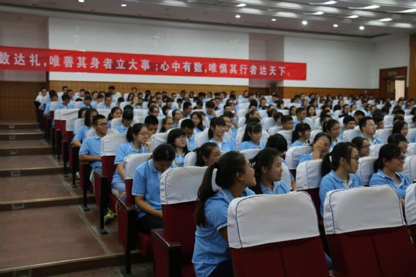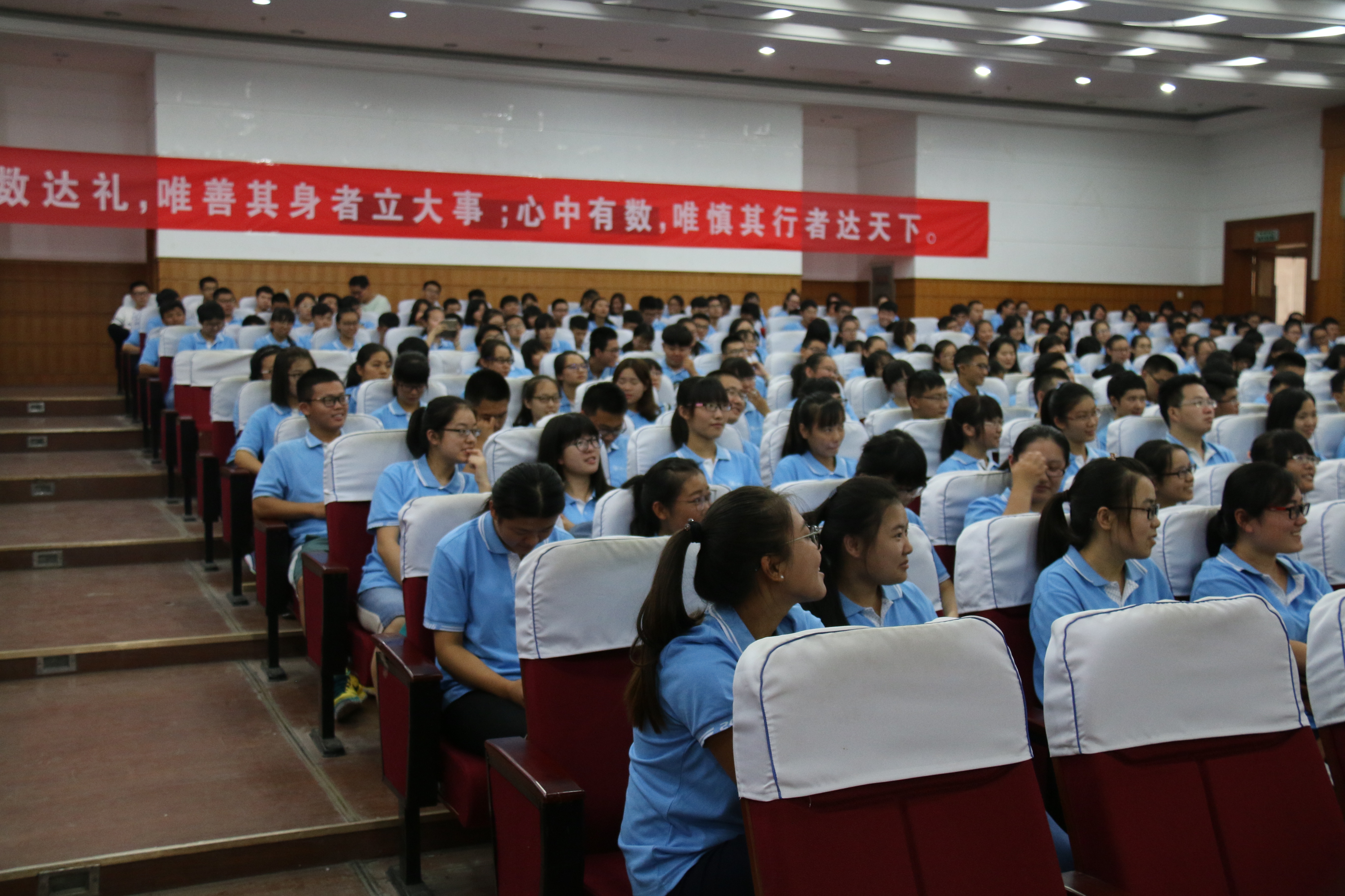 的历史、文化、特色、发展及其远景,也对我院历史文化特色、专业体系、专业现状及在国内外的地位、专业发展前景做出详细说明。他结合学校“弘毅、博学、求真、至善”的校训,要求同学们自觉养成勤学、修德、明辨、笃实的品质,并以数院往届优秀毕业生为榜样,鼓舞新生们“长江后浪推前浪”,朝着更高的目标前进。