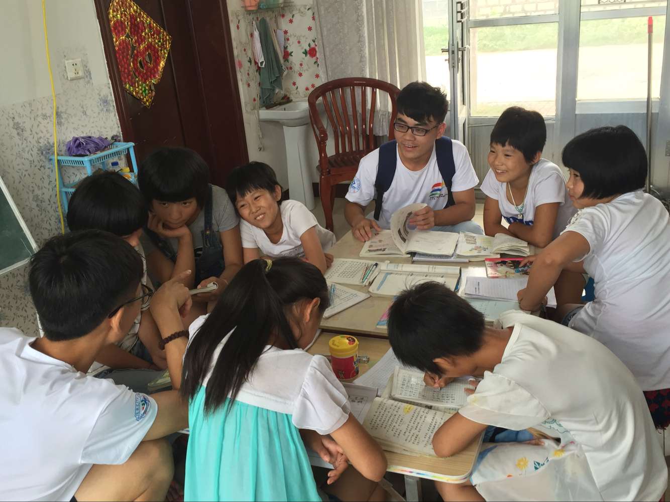 经过了两天的调研,志愿者们已基本了解齐家村的情况。今天志愿者们组织村内小学和初中的学生在服务基地进行支教活动。活动伊始,志愿们将学生按年级分为六组,进行不同科目不同年级的辅导。上午进行的语文辅导,志愿者们教学生们读课文、写字,并给学生们进行了听写,学生们热情学习,并基本掌握所学的知识。下午进行了数学辅导,学生们就自己学习上不懂的问题向志愿者们提问,志愿者们均一一解答,并向学生们讲解了新的知识,学生们受益匪浅,志愿者们也从跟学生的相处中学习到了如何与学生更好的交流,从过程中体会到了老师的辛苦。