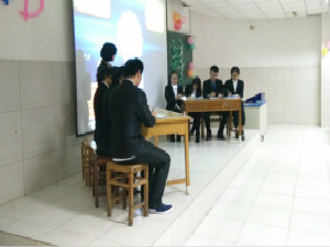 在第二教学楼105教室举办辩论赛决赛,出席此次辩论赛的嘉宾有学生工作办公室主任郭桂芬老师及数学院学生会主席团成员。