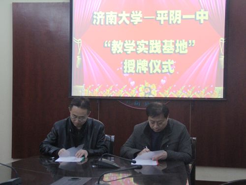 院长管延勇、副院长王纪辉、数学教育教研中心负责人以及平阴一中校长张立民、副校长贾勇和高中各级部主任、数学教研组长等有关同志参加签约挂牌仪式。
