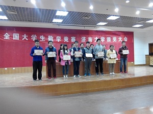 党委副书记、副院长董晓宁,信息科学与工程学院团委书记李军宝,大学数学教研部主任杨殿武、数学与应用数学系副主任李可峰出席颁奖仪式,并为获奖学生颁奖。第六届全国大学生数学竞赛优秀指导教师吕洪波老师主持颁奖仪式。