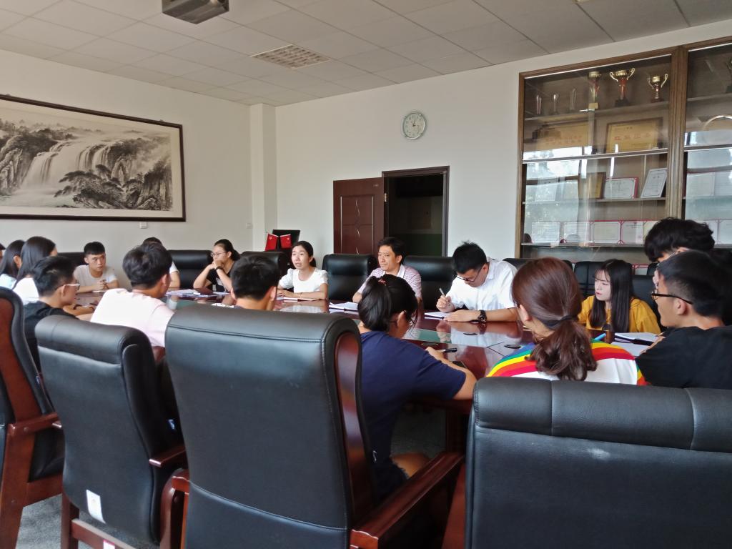 在学院会议室召开2018级迎新工作会议。学院党委副书记、副院长孟德洋、团委书记赵华磊、17级辅导员吴立军、18级辅导员耿婉茹以及所有助班参加本次会议。会议由团委书记赵华磊主持。