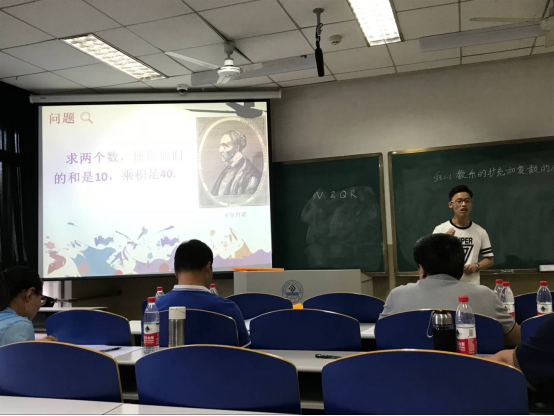 师范生从业技能大赛(数学学科组)决赛。决赛邀请了山东省实验中学、济南市舜耕中学的徐成周、崔洪林、孙国庆老师及我校数学教育教研中心的陈兆英、吕林燕老师担任评委。文学院谷瑞丽老师也参与指导了比赛。