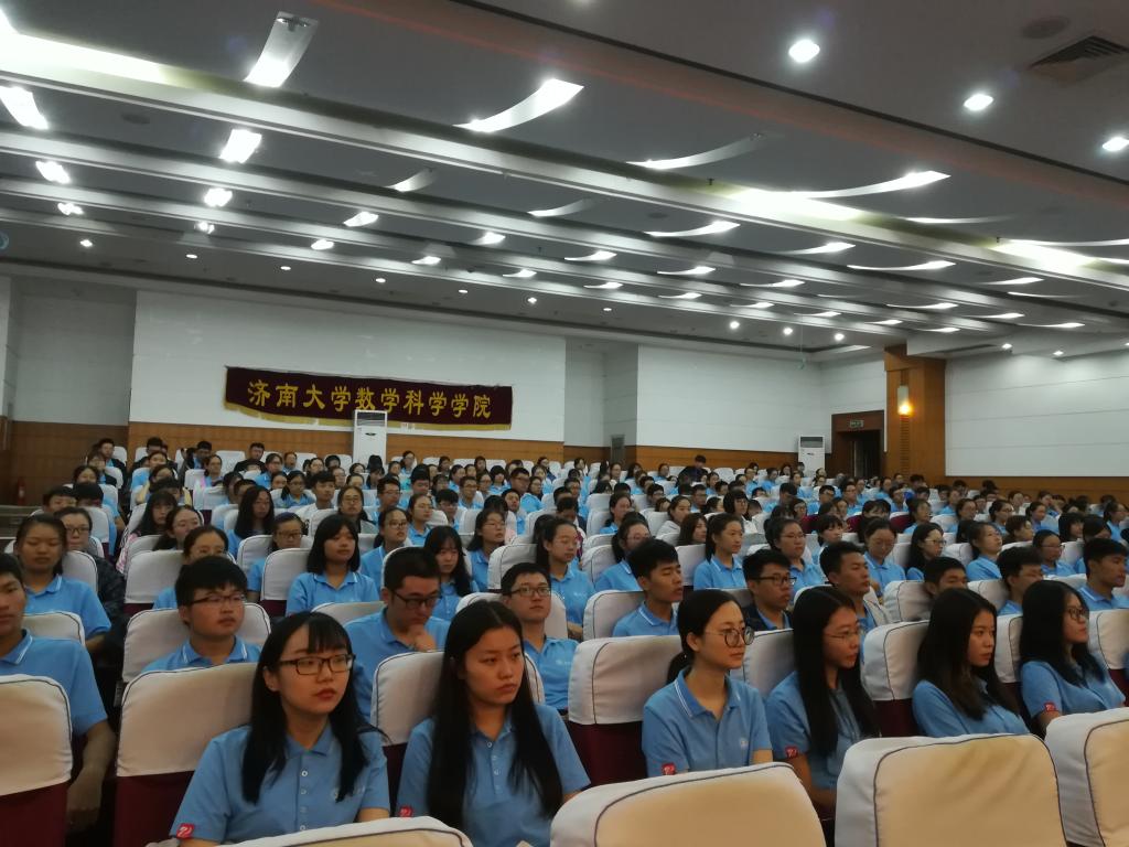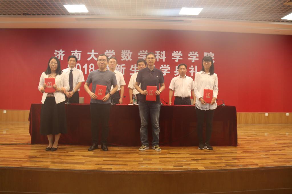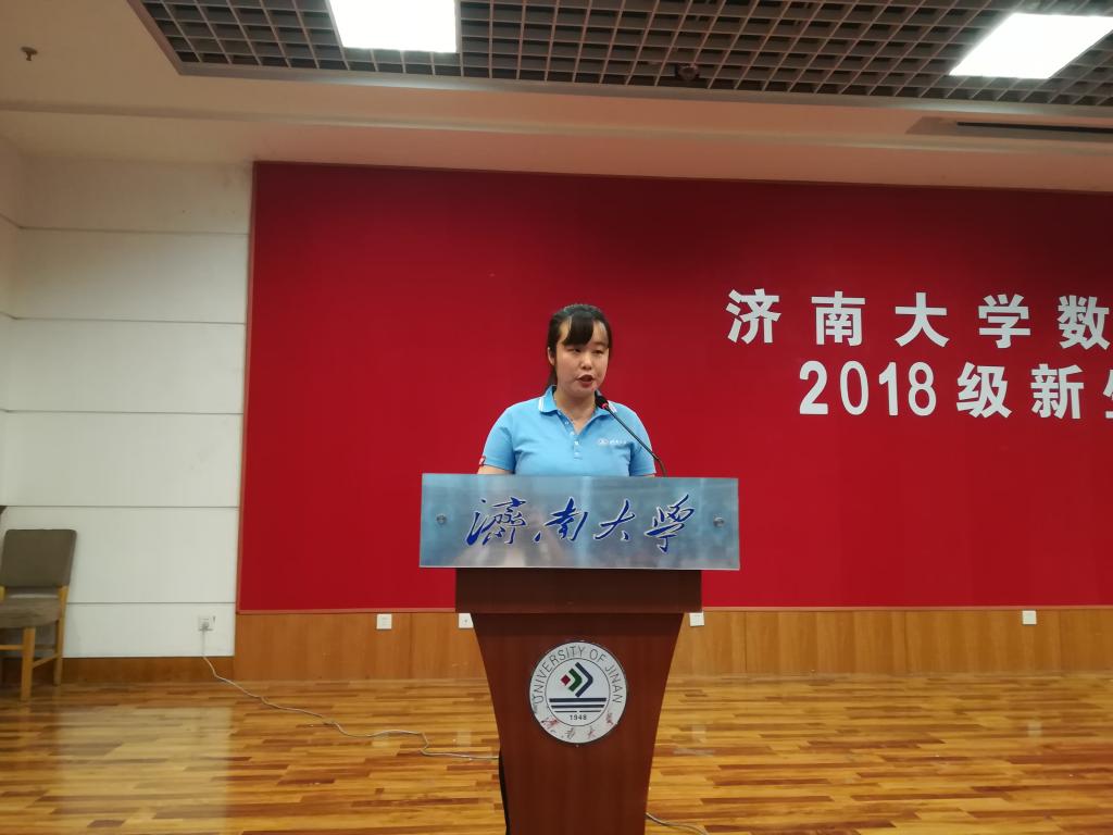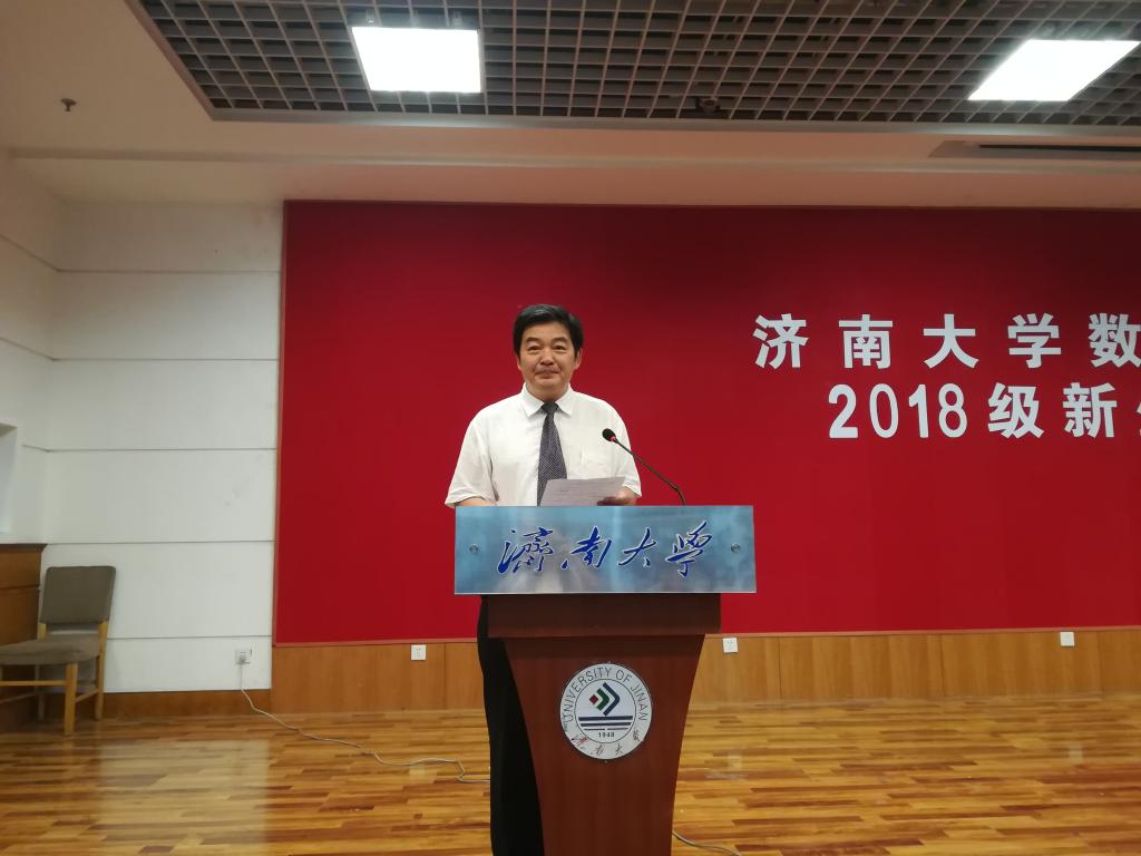 孙红卫教授作为教师代表致辞。他结合自己的求学和科研经历,分享了自己的从教心得,畅谈了在数学学习过程中可能会出现的挫折和困难。他表示,数学专业的学习是一个循序渐进的过程,要想取得理想的成绩,就要拿出高考时候的劲头与热情,全身心地努力与奋斗,方能有所成就。国家奖学金、美国建模比赛国际一等奖、省优秀学生干部获得者刘书佳分享了自己在学习、生活中的点滴感悟。她鼓励新生们在学习上要做到多思、多问、多做,既要及时向老师请教,亦要有自己的见解,在生活中要做有心人,要学会在与同学、师长的沟通交流中提升自己。本科生新生代表刘嘉炜在发言者中表示,将明确自己的奋斗目标,一步一个脚印,努力把自己锻造成对社会、国家有用的人。研究生新生代表尤金在发言中表示,四年的自慰高潮