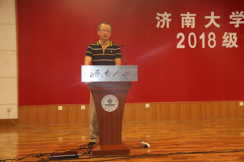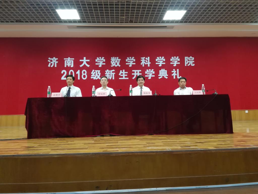 上午九时,典礼在庄严的国歌声中拉开帷幕。典礼上,管延勇院长致辞。他首先代表全院教职工对2018级新同学的到来表示热烈的欢迎和衷心的祝贺,并希望在济大数院的四年时光里,能够为同学们今后的发展增添上最浓墨重彩的一笔。随后,管院长从师资力量、教学成果、科研成果、所获荣誉等四个方面对学院的发展情况进行了详细介绍。