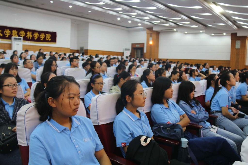 的专业发展现状及在国内外的地位。管院长结合学校“弘毅、博学、求真、至善”的校训,鼓舞新生自觉养成“勤学、修德、明辨、笃实”的品质,并以数院往届优秀毕业生为榜样,鼓舞新生“长江后浪推前浪”,呼吁新生们向往届优秀毕业学习高效、科学的学习方法,朝着更高的目标前进。最后,管院长强调了实践在收获知识、增长才干中的重要作用。他说,理论可以从书本中获得,但是人需要有精力通过实践去慢慢体会世界,像在座的各位需要慢慢的通过自身的成长去体会什么是真正的大学。