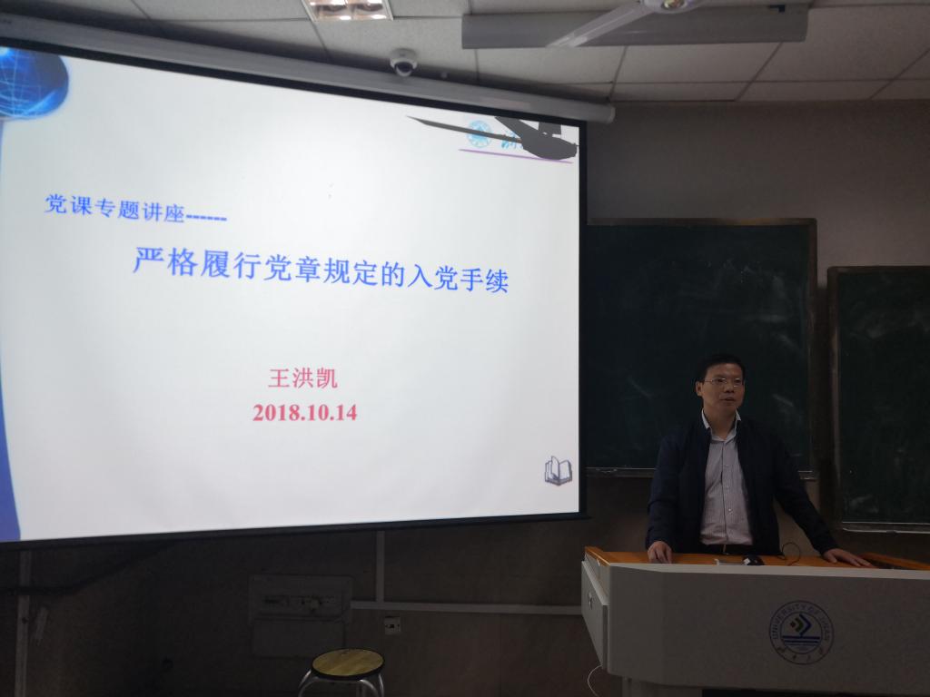 首先,王洪凯副院长通过播放视频向入党积极分子们介绍了入党章程和入党条件,并结合自身经历告诫在座的各位入党积极分子们要时刻遵守党的纪律,弘扬党的精神,时刻遵守自己的原则,坚守底线。随后,王副院长以幽默风趣的话语向入党积极分子们展现了中国共产党的先进性和为人民服务的热情,不仅增强了入党积极分子们加入党组织的决心,更让大家懂得了如今幸福的来之不易。最后,王副院长提出,每位同学都应有兼济天下的情怀和为人民服务的奉献精神,争取为祖国贡献自己的力量!