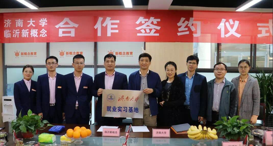 与临沂新概念教育集团举行就业实习基地签约仪式。我院党委副书记、副院长孟德洋,学院教师李新、吴鸿华、张志强、耿婉茹,临沂新概念教育集团李峰副校长,胡顺浩经理等参加了签约仪式。