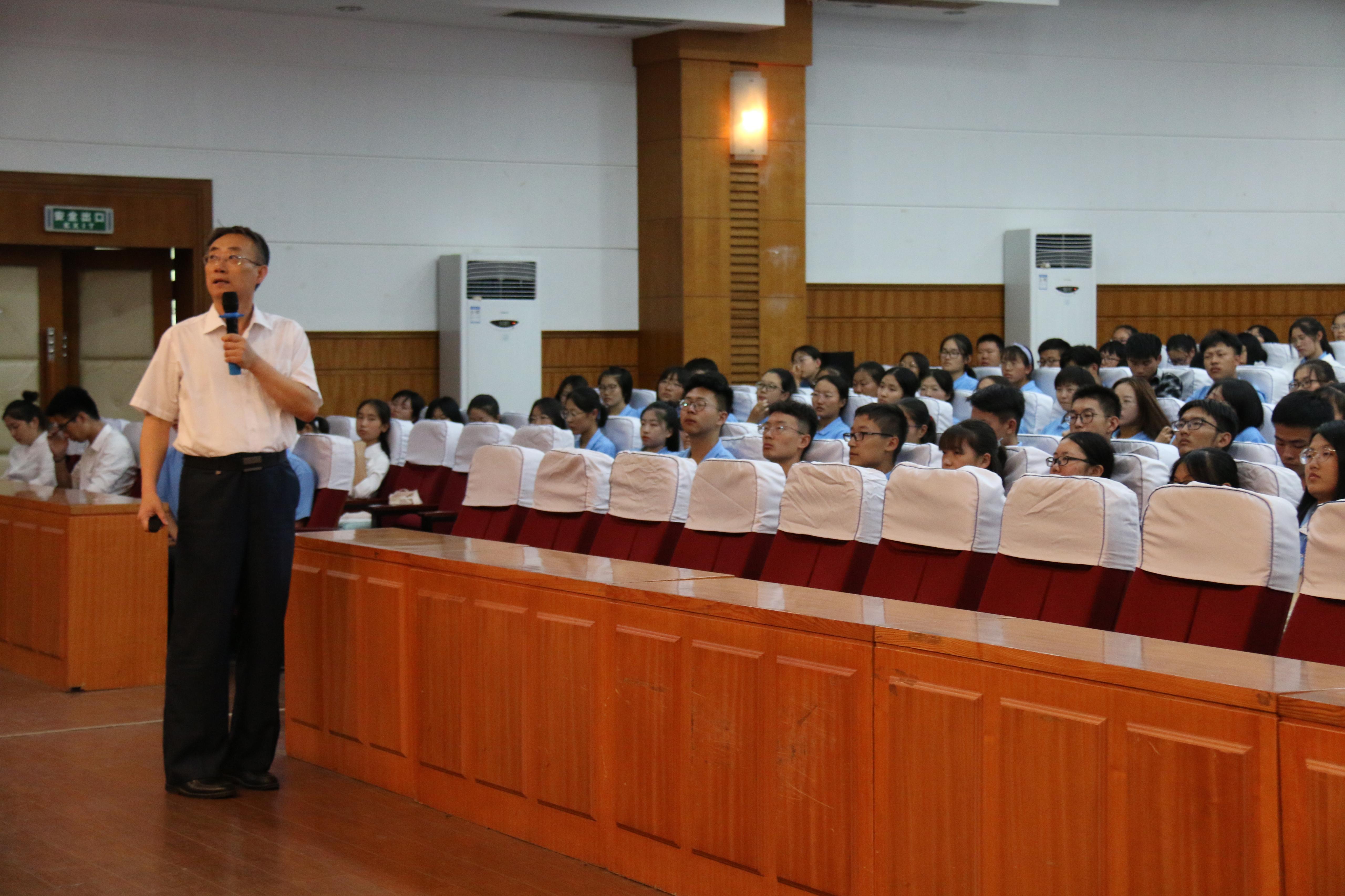 的专业发展现状及在国内外的地位。管院长结合学校“弘毅、博学、求真、至善”的校训,鼓舞新生自觉养成“勤学、修德、明辨、笃实”的优良品格,并以数院往届优秀毕业生为榜样,鼓舞新生“长江后浪推前浪”,呼吁新生们向往届优秀毕业学习高效、科学的学习方法,朝着更高的目标前进。最后,管院长强调了实践在收获知识、增长才干中的重要作用。他说,理论可以从书本中获得,但是人需要有精力通过实践去慢慢体会世界,通过自身的成长去体会什么是真正的大学。