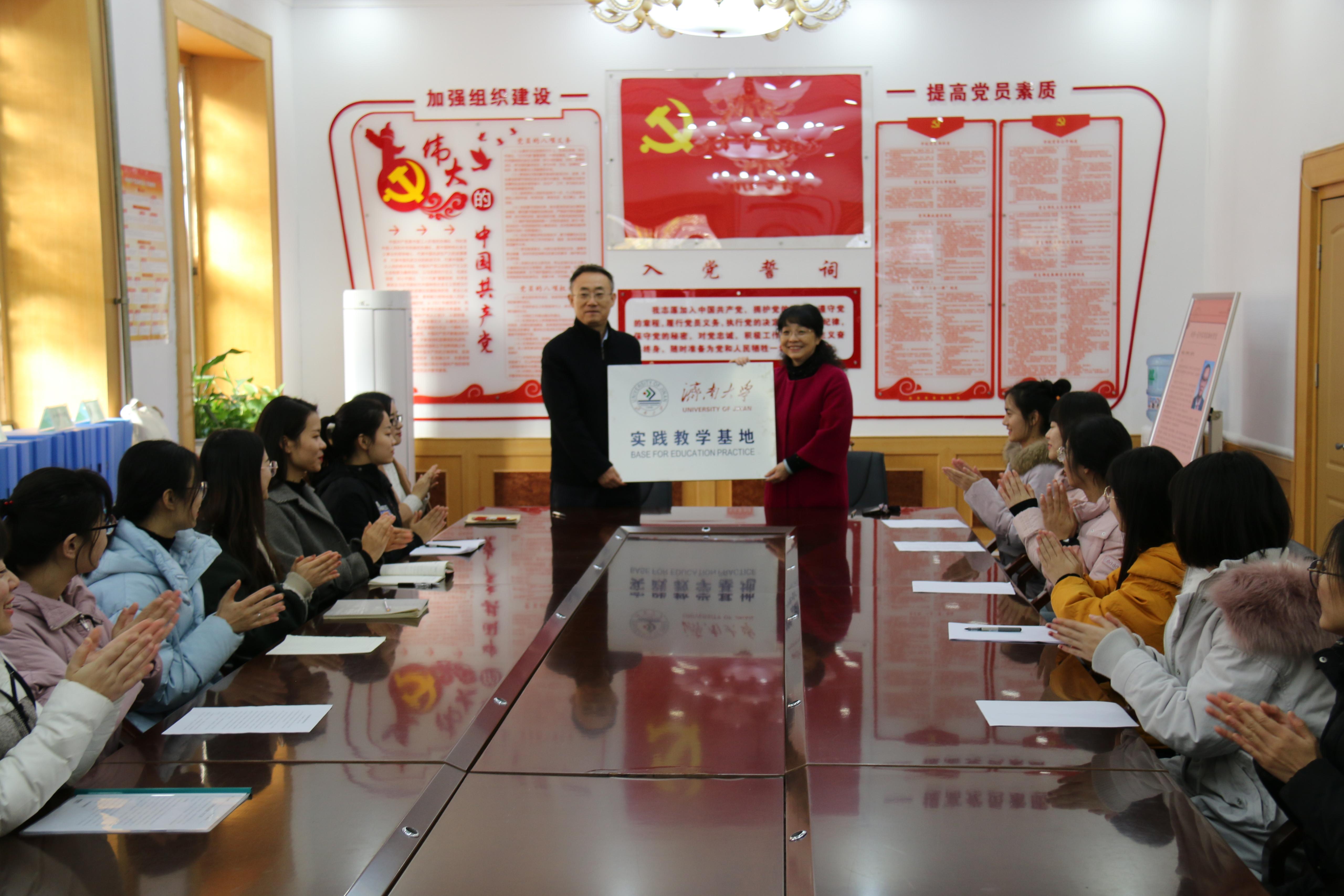 在育英中学座谈前,双方进行了简单的教学实践基地签约挂牌仪式。管延勇院长与育英中学副校长褚爱华出席签约挂牌仪式并讲话。管院长对育英中学近年来对学院实习实践工作给予的支持和帮助表示感谢,并简要介绍了学院学生实习的基本情况以及未来合作意向。褚爱华副校长高度评价了数学院开展的实习实践工作,积极肯定了实习学生在校期间表现,希望以后可以继续深化合作,实现学生成长与院校合作的长远发展。座谈会上,实习生代表英艳谈了自己实习期间的体会。她表示,通过实习,进一步加深了自己对教师职业的认同,也进一步激发了自己从事教师职业的热情和动力,在今后学习中,自己会主动向优秀教师看齐,不断打磨上课技巧,认真研究教学内容,争取早日成为一名优秀的数学教师。