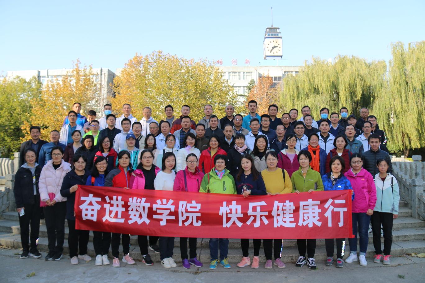 为了丰富全院教职工业余文化生活,增强身体素质,展现教职工昂扬向上的精神风貌,11月3日下午,学院组织开展了“奋进数学院,快乐健康行”主题登山活动。学院党政班子成员、部分教职工参加活动。