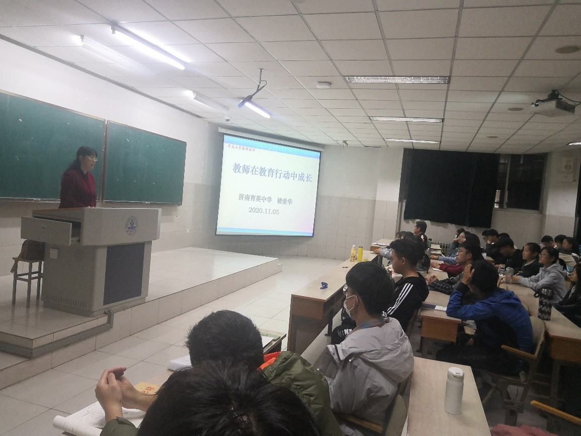 报告围绕教师成长这一主题展开,讲解了教师专业的内涵、类型和层次,好老师的标准,如何成为一个好老师等内容,让学生深刻理解了老师职业的崇高以及责任的重大,坚定了做一名好老师的信心和决心。报告期间,褚爱华与学生亲切交流,解答学生的困惑。