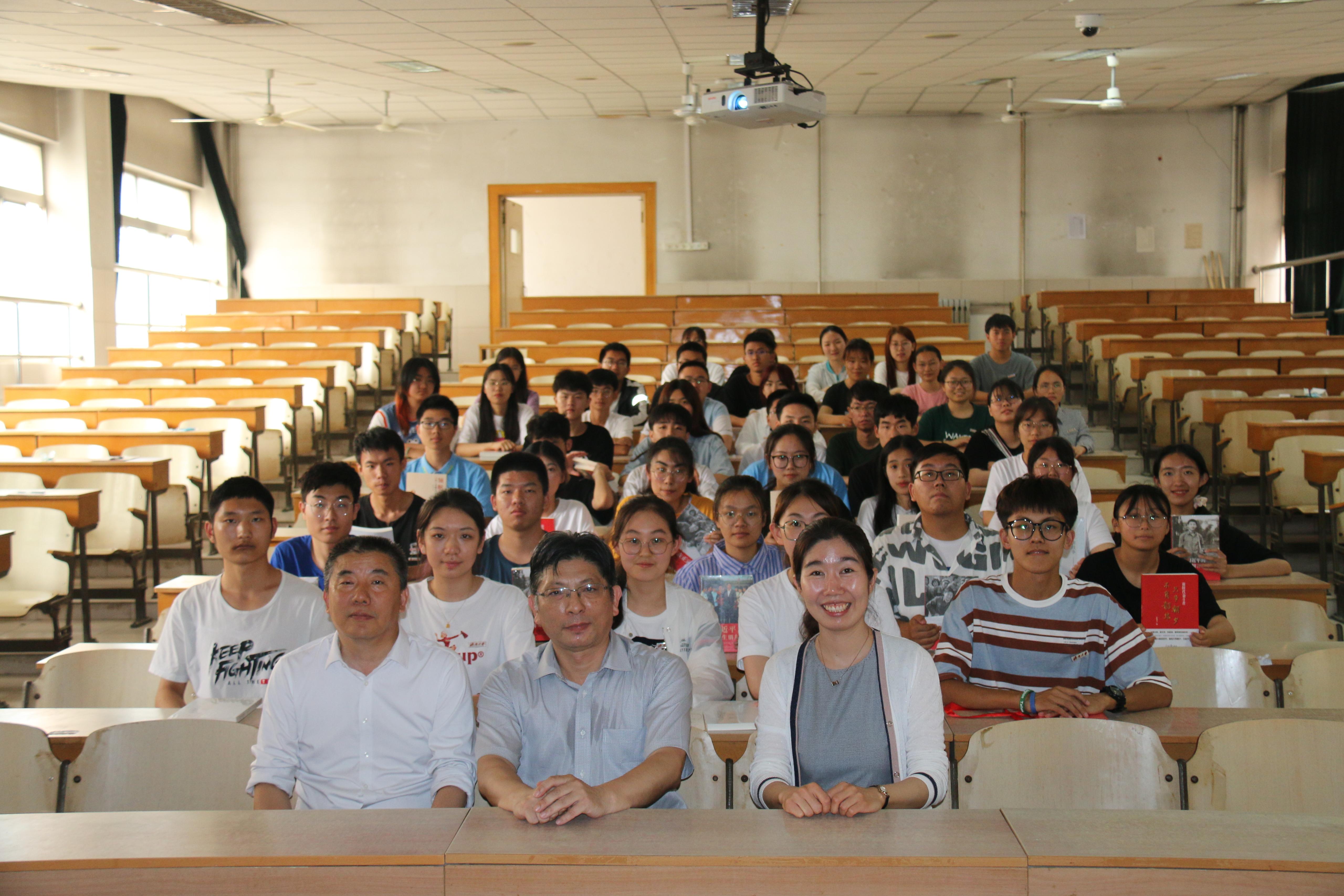 上课之前,杨副校长向所联系班级全体同学每人赠送了一本党史学习书籍,勉励同学们大力发扬红色传统、传承红色基因、坚定红色信仰,坚定不移向党中央看齐,以“五四”精神为指引,迈进新征程,奋进新时代。