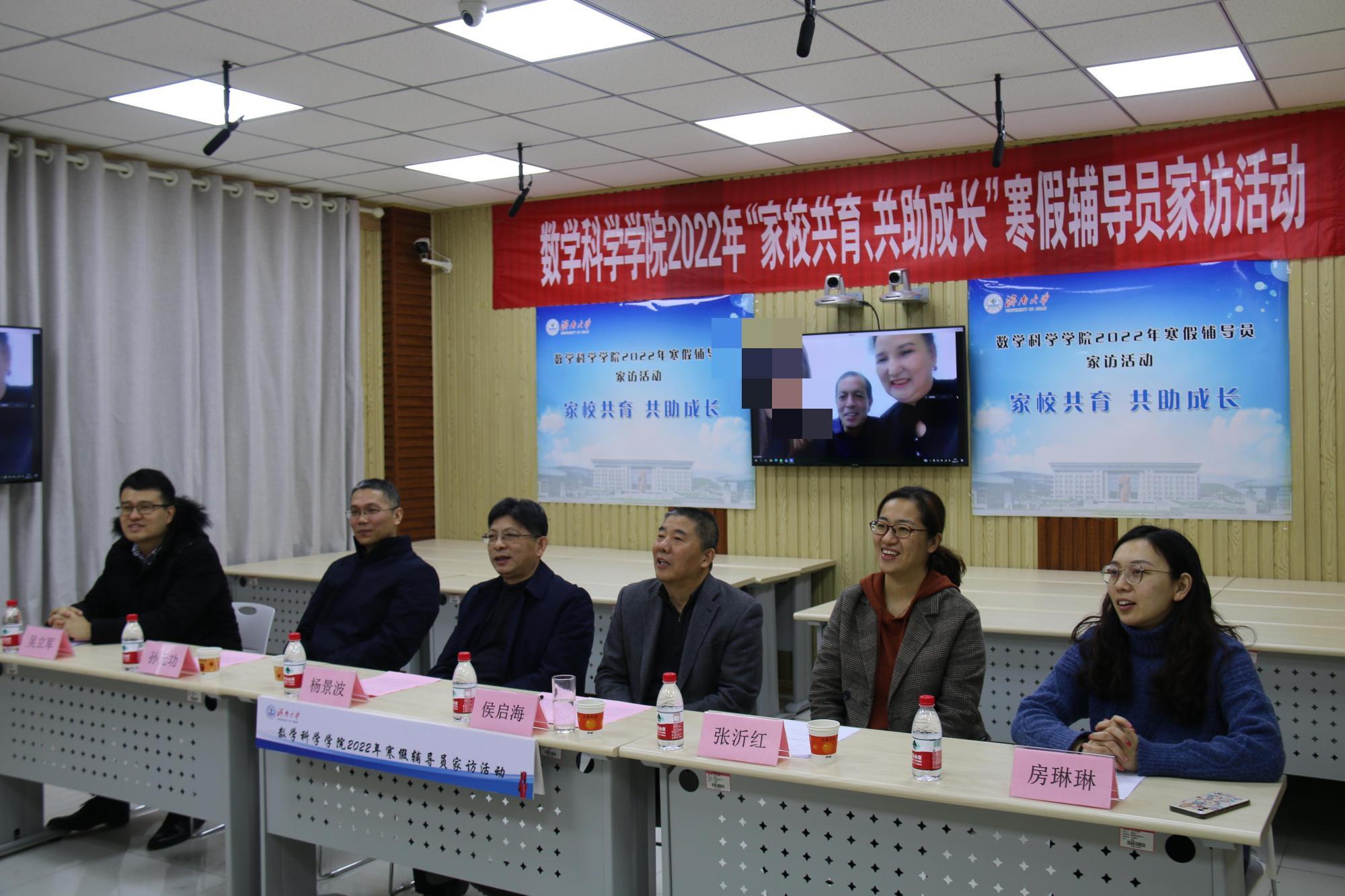 2022年1月7日,学院在7教智慧教室组织开展了2022年“家校共育、共助成长”线上寒假辅导员家访活动。学校党委常委、副校长杨景波出席活动,学院党委书记侯启海、学院院长孙元功、党委副书记、副院长张沂红,副院长王洪凯、副院长靳绍礼、辅导员赵华磊、吴立军、耿婉茹、房琳琳、班主任郝志峰、成晓晗参加活动。