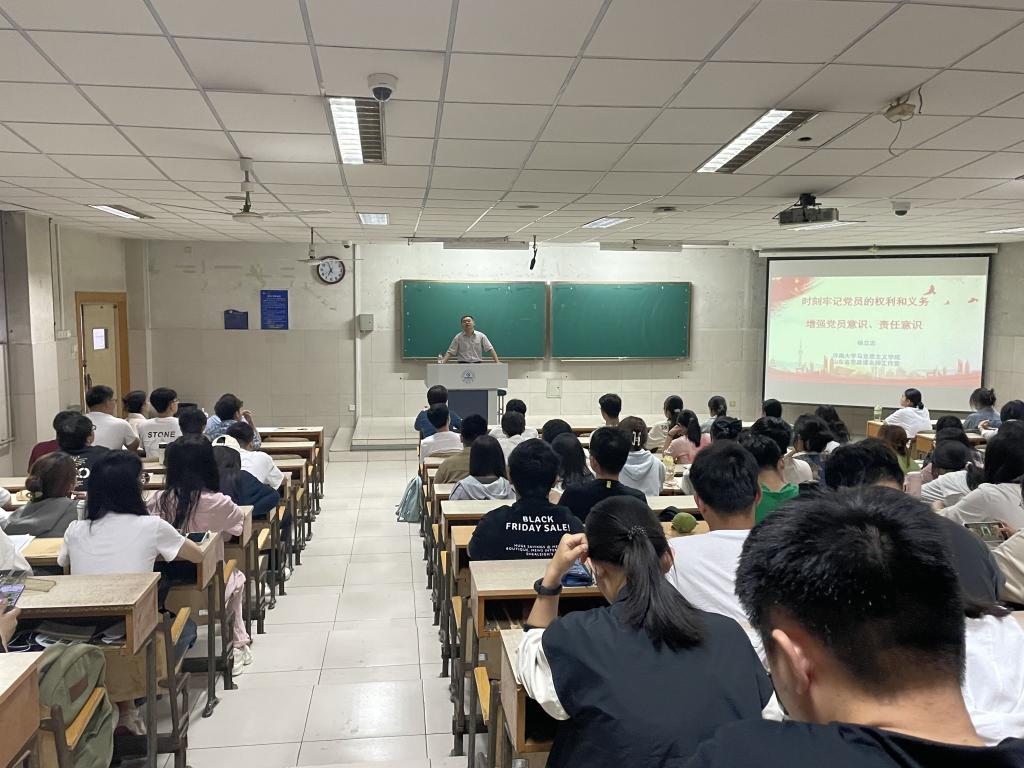 党委举办学习贯彻习近平新时代中国特色社会主义思想主题教育专题辅导报告会,邀请马克思主义学院副院长杨立志教授作《时刻牢记党员的权利和义务增强党员意识、责任意识》专题报告。报告由学院党委副书记张沂红主持,部分教工、学生党员和全体入党积极分子近200人现场聆听报告。