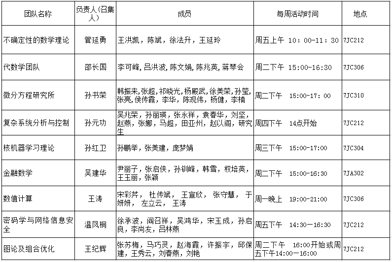 2016年下半年科研团队活动时间地点