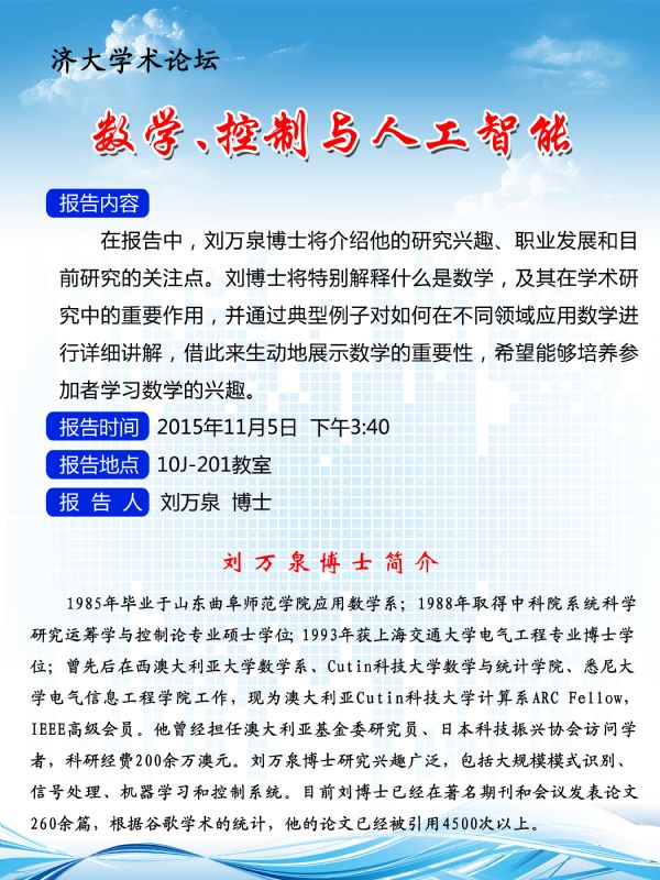 学术报告:数学、控制与人工智能