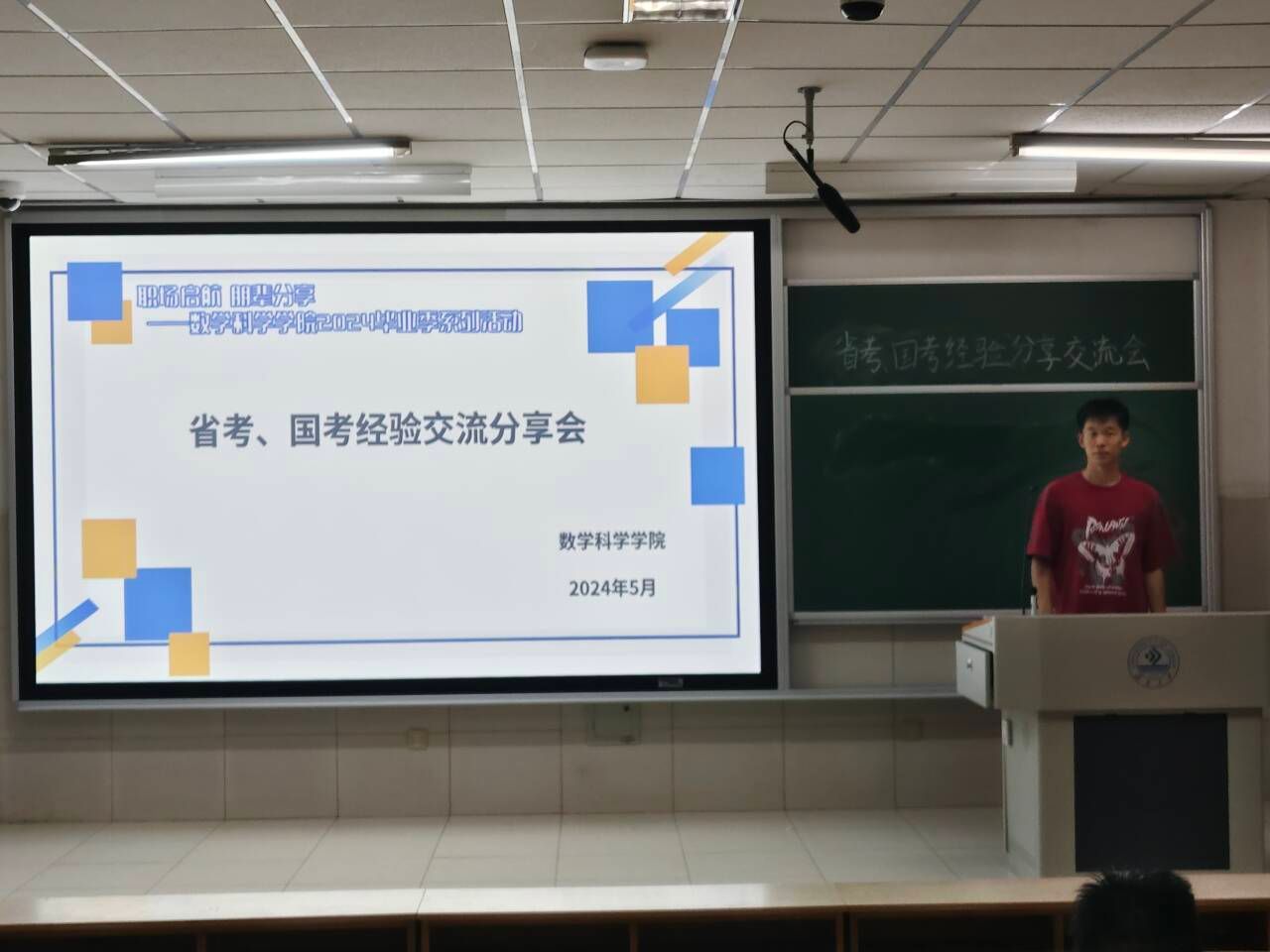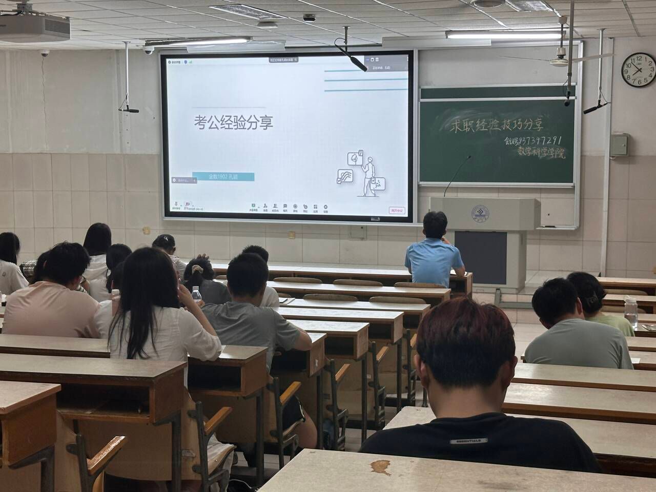 在二教顺利举办国考省考经验交流分享会,学院邀请了国考省考上岸的同学为大家分享经验,发挥朋辈引领作用,为考生们提供一个相互学习交流的平台。活动伊始,金数1902孔颖以其扎实的备考策略和严谨的学习态度介绍了如何制定合理的学习计划、高效利用备考资料以及在考前进行有效的冲刺,让大家深刻感受到了国考备考的严谨性与艰巨性。在心态调整方面,她也特别强调了保持良好心态的重要性,指出我们应该保持积极、乐观的心态,不断调整自己的心态,以应对可能出现的困难和挫折。紧接着,宋振永则着重分享了他是如何平衡工作与学习的。他表示国考省考并不如想象中如此困难,并着重强调了我们应重视报名的开始阶段和考试时间节点。国考省考不仅是一场知识的较量,更是一场心态和毅力的考验。备考过程中,我们不仅需要掌握扎实的基础知识,还需要学会如何调整心态,在压力下保持冷静和自信。通过此次分享会,同学们不仅收获了很多实用的备考技巧,更感受到了备考路上的温暖与力量。相信在不久的将来,会有更多的同学在国考省考的道路上取得优异的成绩,为国家建设添砖加瓦!