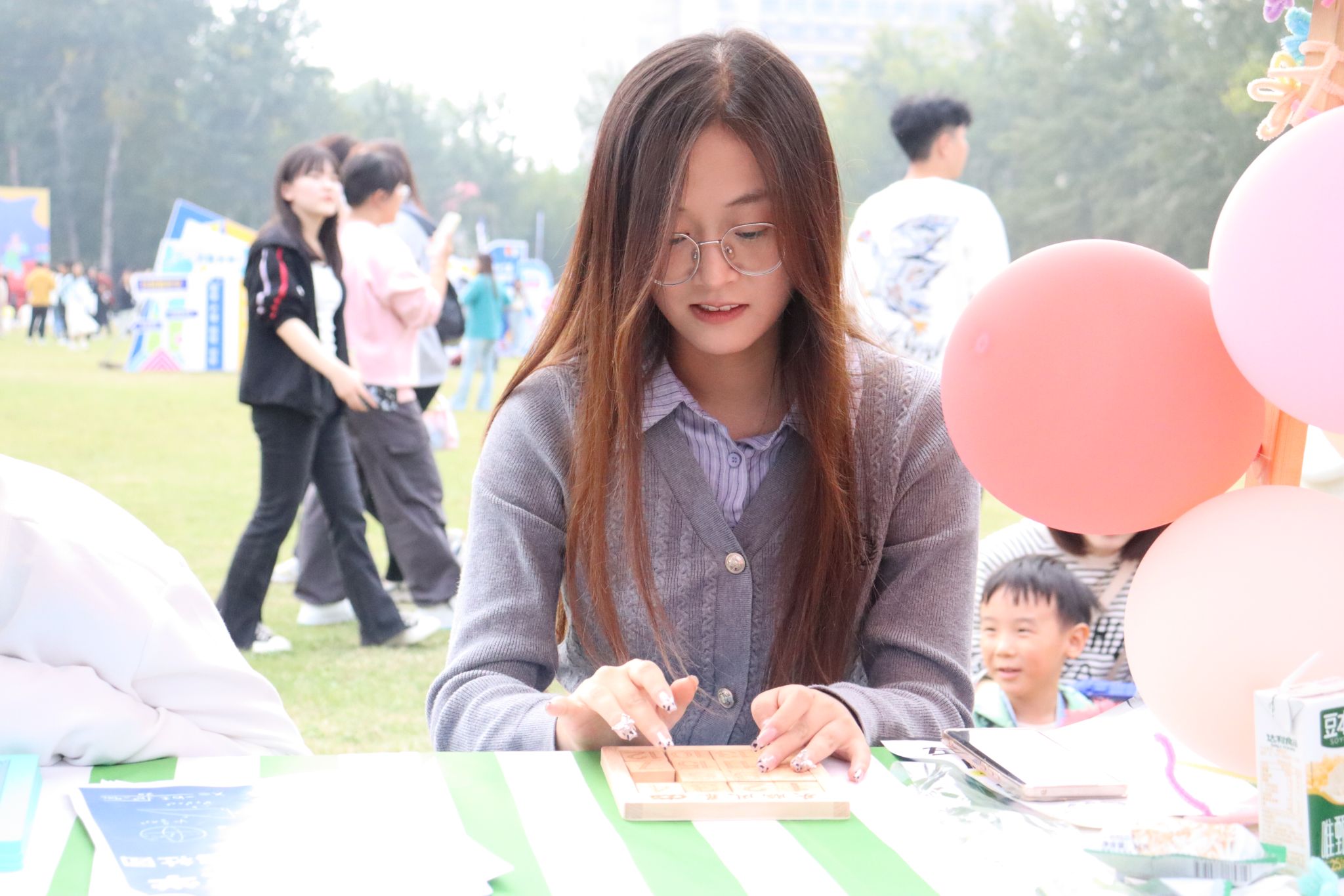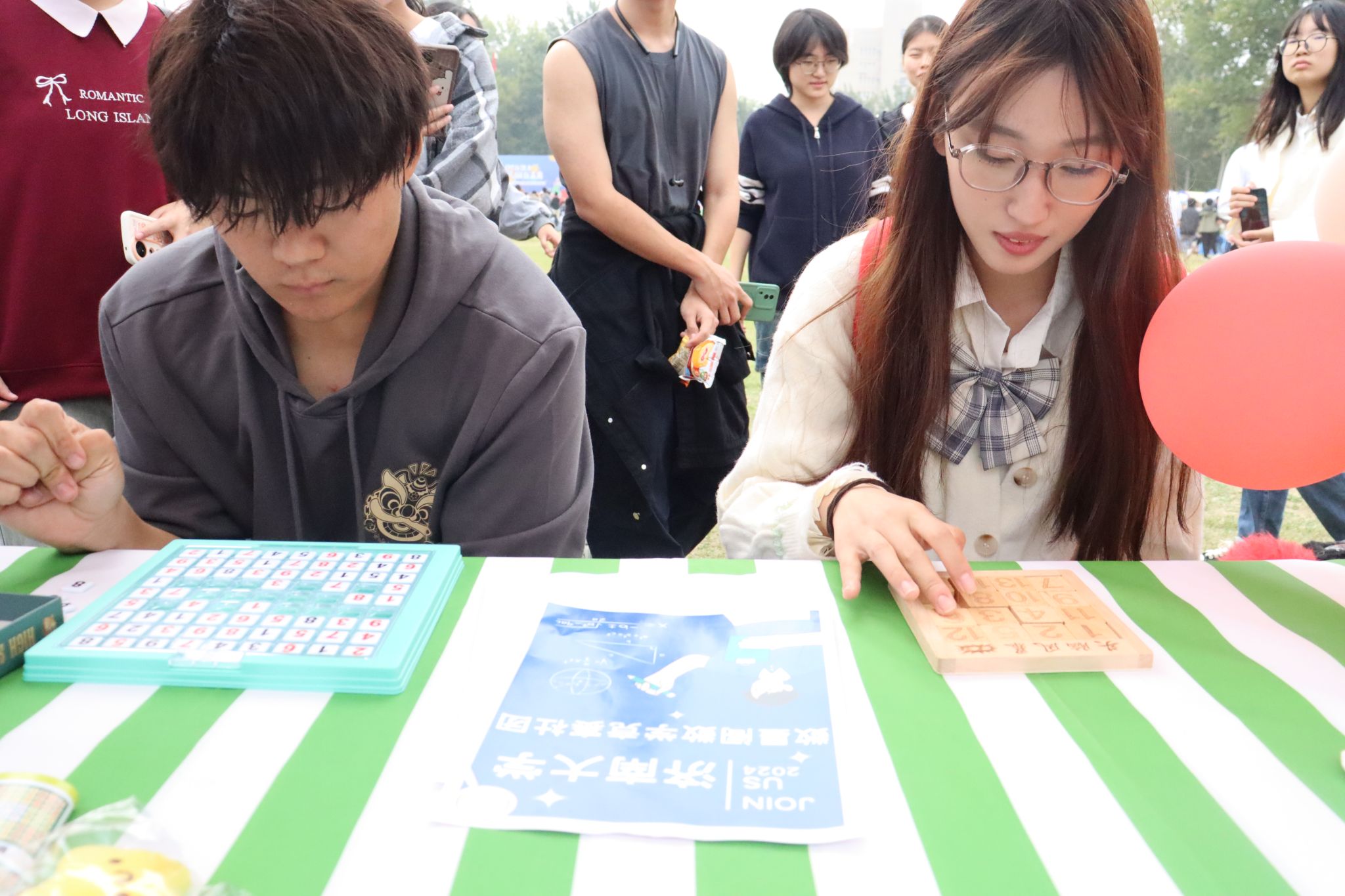 数星阁数学竞赛协会就以其别具一格的魅力吸引着众多观众欣然前往。数独、华容道等各类益智游戏,吸引了不同学院各个年级的同学们来此进行思维碰撞和脑力挑战。在游戏过程中,参与者沉着冷静,运筹帷幄,全神贯注于眼前的挑战,通过游戏体味数学知识,在探索中感受数学文化。此外,竞赛题目令人眼前一亮,以其多样的风格吸引着参与者积极投身其中。同时,数学建模也凭借其蕴含的团结精神与数学应用魅力,吸引了众多学生的关注。自慰高潮