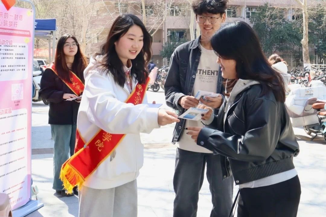 青年志愿者协会于3月21日与22日在第八食堂广场和第七教学楼前举办“写给未来的一封信——童心筑梦行”活动。活动通过明信片绘制等方式为山区的孩子们送去爱和温暖,让温暖与希望在校园中传递。