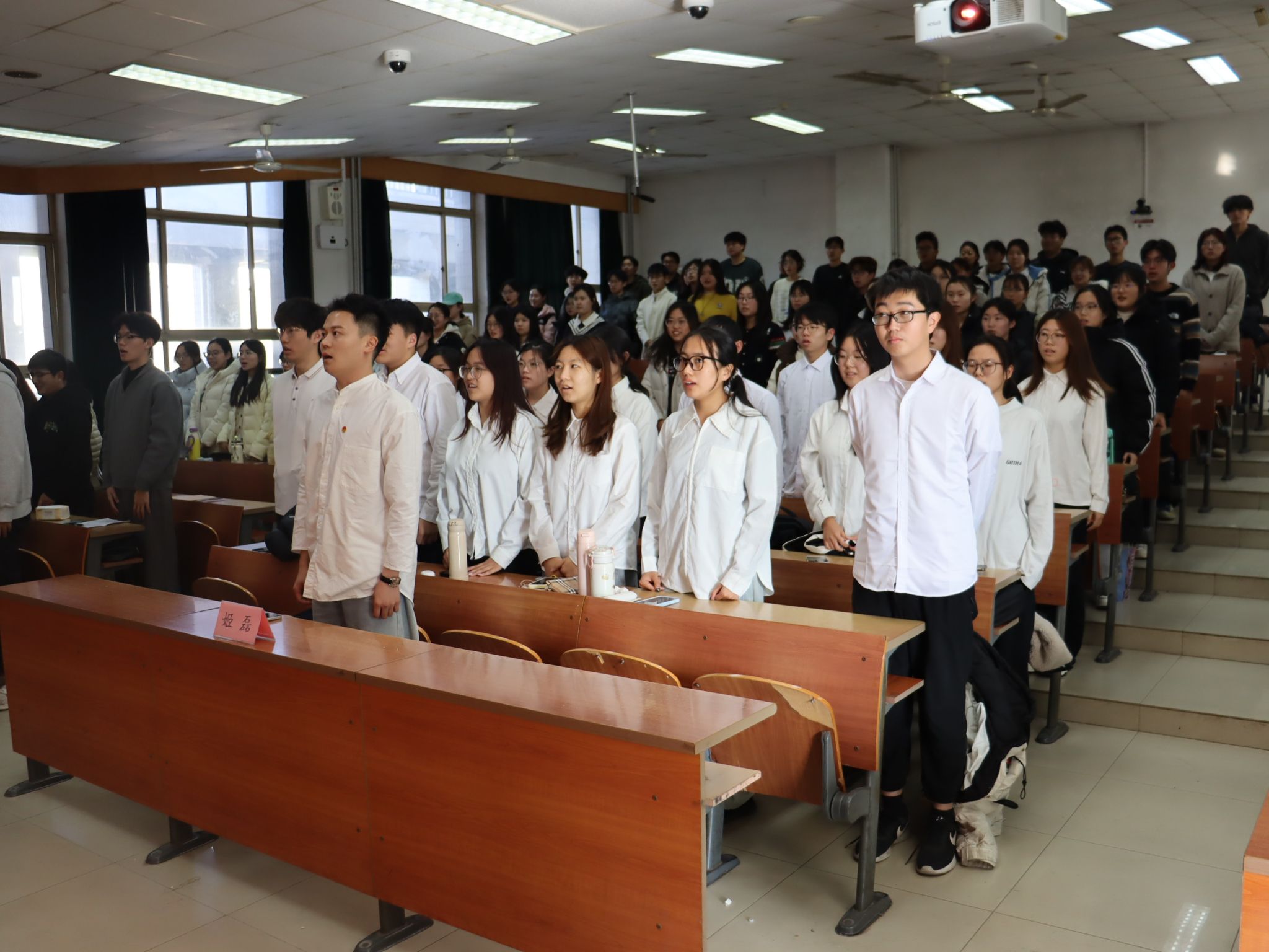 团委于11月18日在11J1302教室举行2025年下半年新发展团员入团仪式暨团支部书记专题培训会。学院团委书记姬磊、2025年下半年新发展团员、全体团支部书记及学生组织干部参加本次活动。