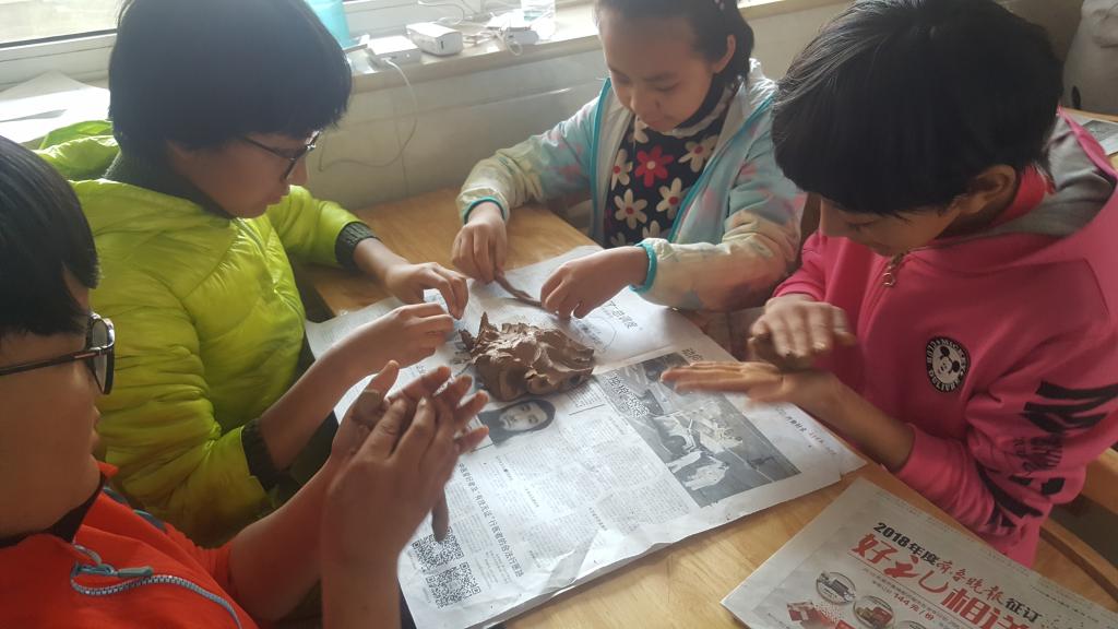 活动伊始,志愿者们分工协作,有条不紊地安排各个班级观看陶艺制作视频。随后,同学们开始动手制作陶泥艺术品,大家分组进行,团结合作,志愿者们认真讲解注意事项,耐心指导,并一同加入手工活动中,陶艺课进行的有声有色。牧童骑黄牛,豌豆射手,生日蛋糕,刻着“家乡”的花篮……一件件艺术品在在同学们巧手下生成,活动也随之进入了尾声。完成手工后,大家合力打扫教室,收拾桌椅、陶泥,分工明确。最后,大家合影留念,陶艺课完美落幕。