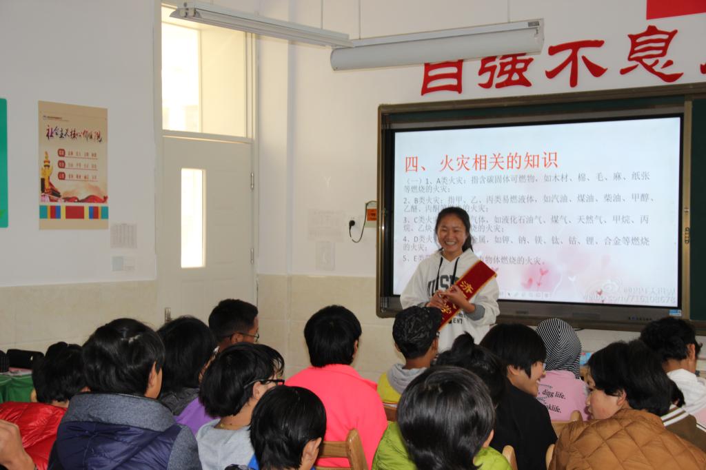 经过各个部长的安排,所有人员分小组展开了此次志愿者活动。志愿者首先为孩子们讲解了很多关于消防安全的知识。随后来到问答环节,孩子们争先恐后地回答问题,体现出他们敏捷的思维与兴奋的心情,短暂的课间休息后,开始了孩子们期待的游戏环节。“数七”、“正话反说”等一系列游戏让孩子们玩得十分开心,并给了他们很多表演才艺的机会,藏语诗、藏语歌和藏族舞丰富了此次的活动内容,为本次活动增添了无与伦比的色彩。最后,志愿者与孩子们合照,为此次活动画上了圆满的句号。