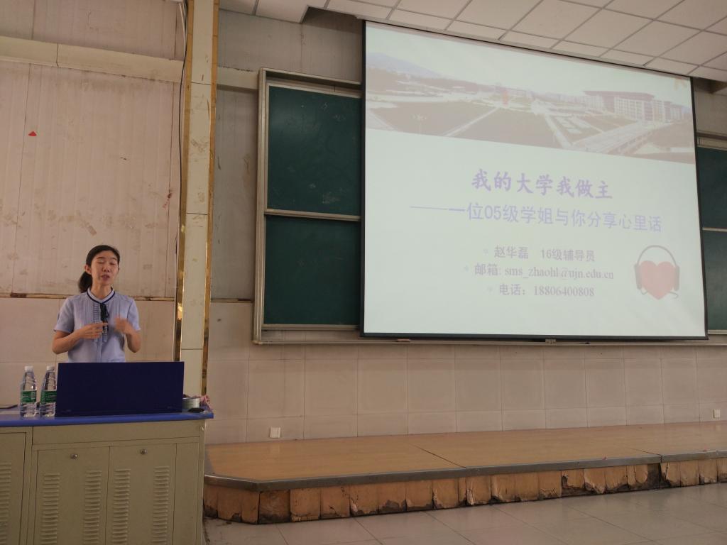9月19日上午10点,自慰高潮 入学教育在星硕继续进行。本次报告的主题是如何度过大学生活。主讲人是16级辅导员赵华磊老师。